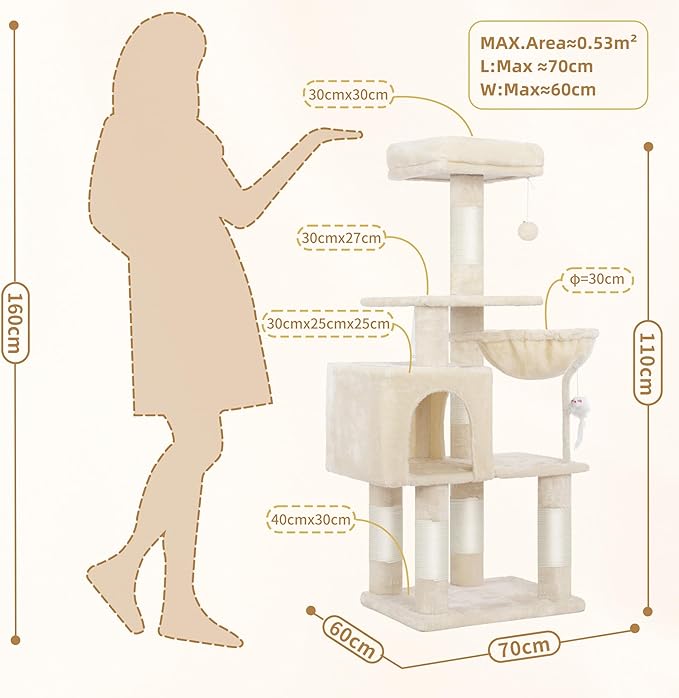 2.Stability is the Primary Consideration for A Cat Tower: Sturdy cat climbing frame base, sisal wrapped scratch posts and Anti-toppling devices ensures the security of active kittens and cats playing on the activity centre