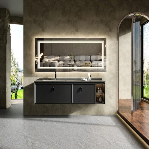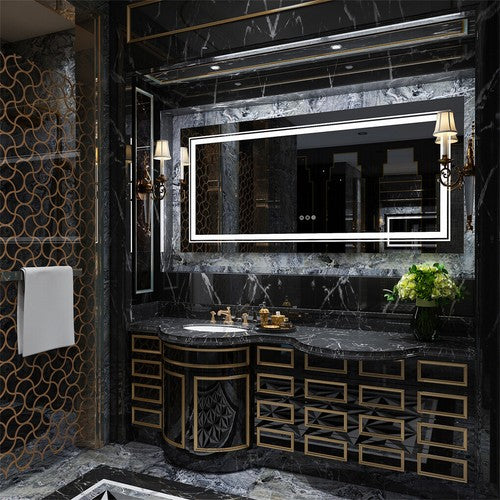- Bathroom mirror with front lit and backlit for dual illumination.