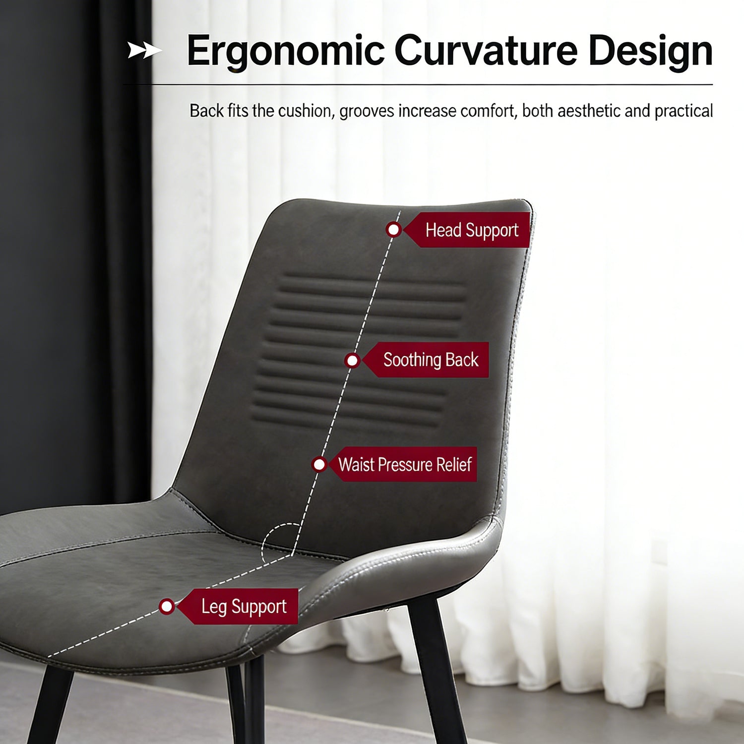 This dining chair features soft, cloud‑like upholstery from the seat to the backrest. Its sculptured curved back supports your spine perfectly, delivering exceptional comfort while adding an elegant, eye‑catching profile to your space.
