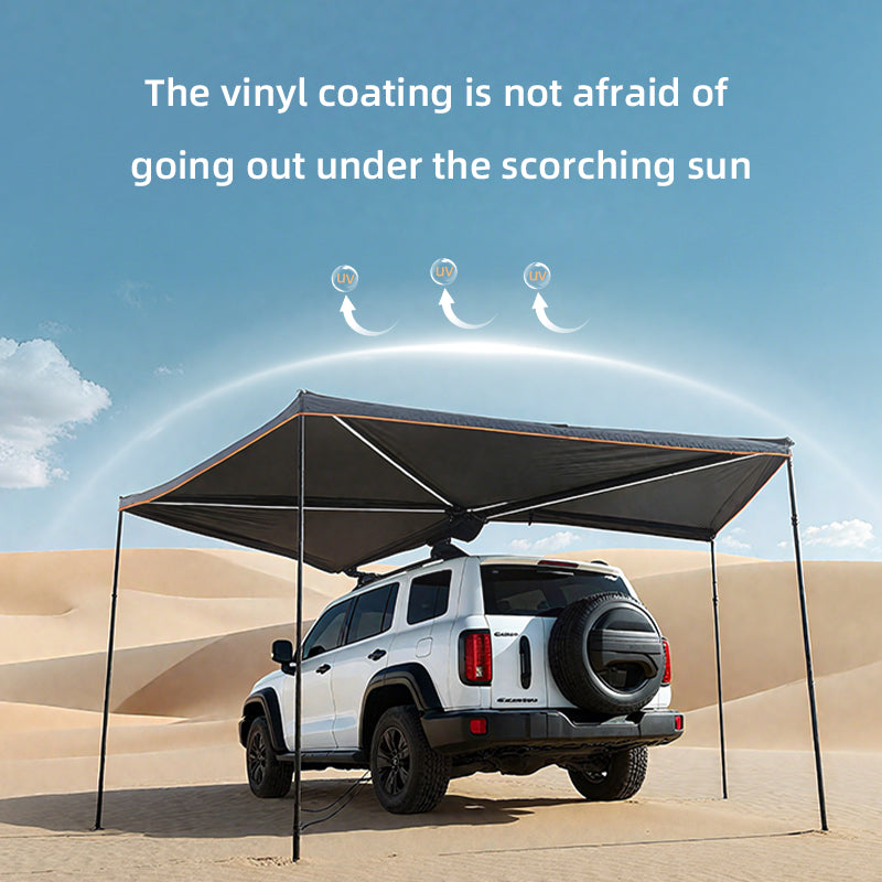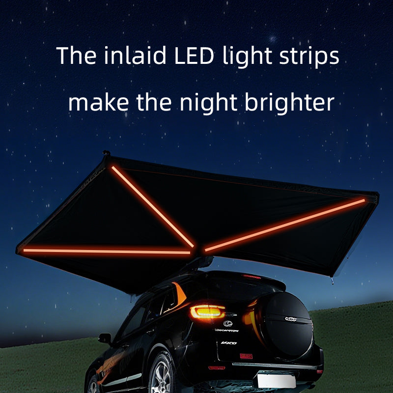 270 degree car side tent for sun and rain protection, aluminum alloy black rubber canopy on the side, SUV outdoor quick opening, side fan-shaped tent
