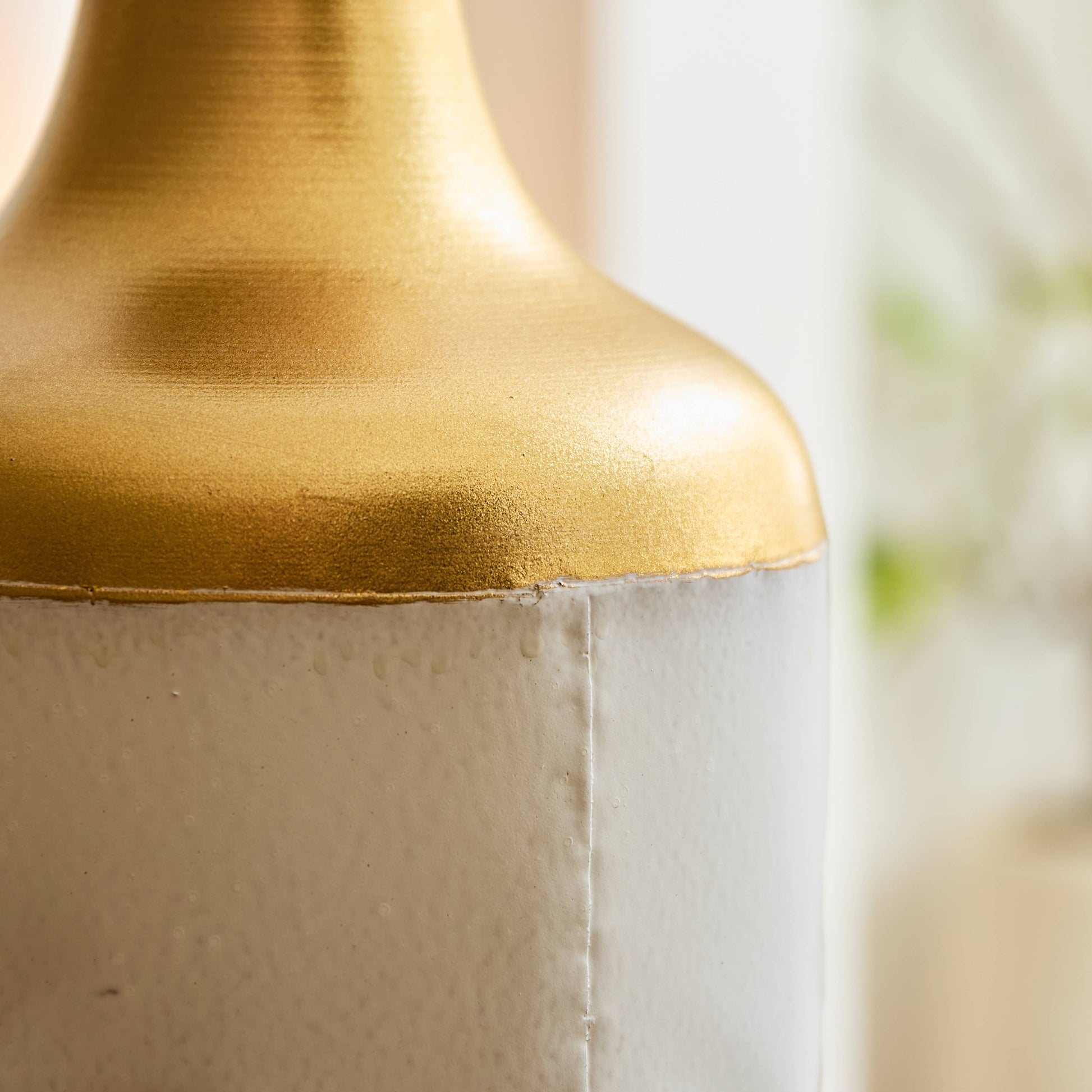 Modern Elegance Meets Glam Style -- Bring a sophisticated edge to your interior with this stunning set of metal vases. Featuring a clean white textured finish and accented with a blend of polished and hammered gold, these vases offer a unique balance of minimalism and glam. The all-metal construction ensures long-lasting durability while making a bold visual impact. Perfect as a standalone statement or paired with faux stems, these vases enhance any space from living rooms to office shelves with a luxe, contemporary flair. Their tall silhouette and sleek design make them versatile décor pieces that suit a range of home styles.