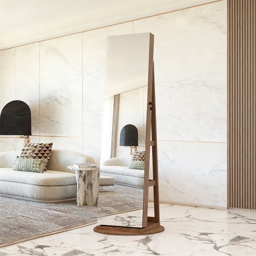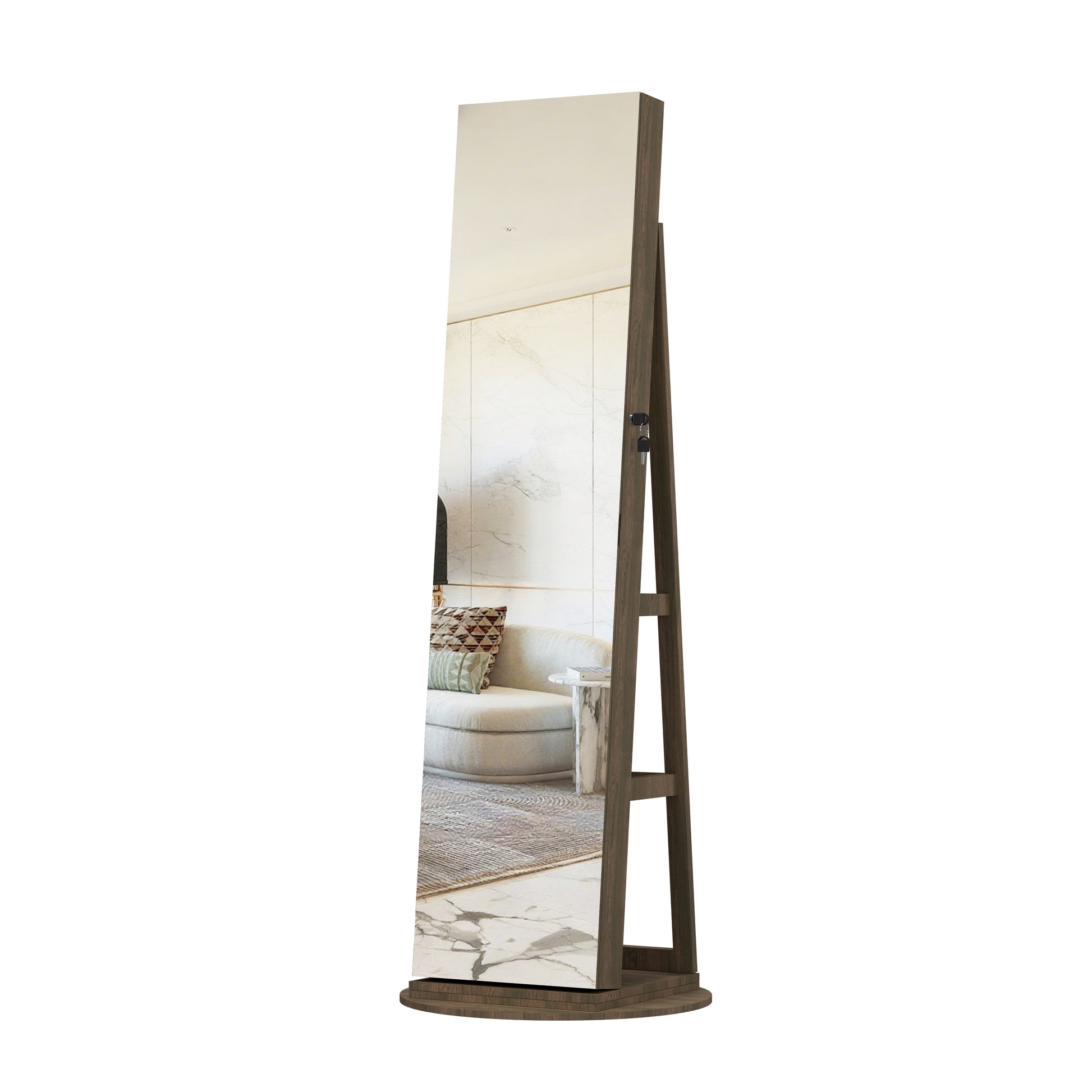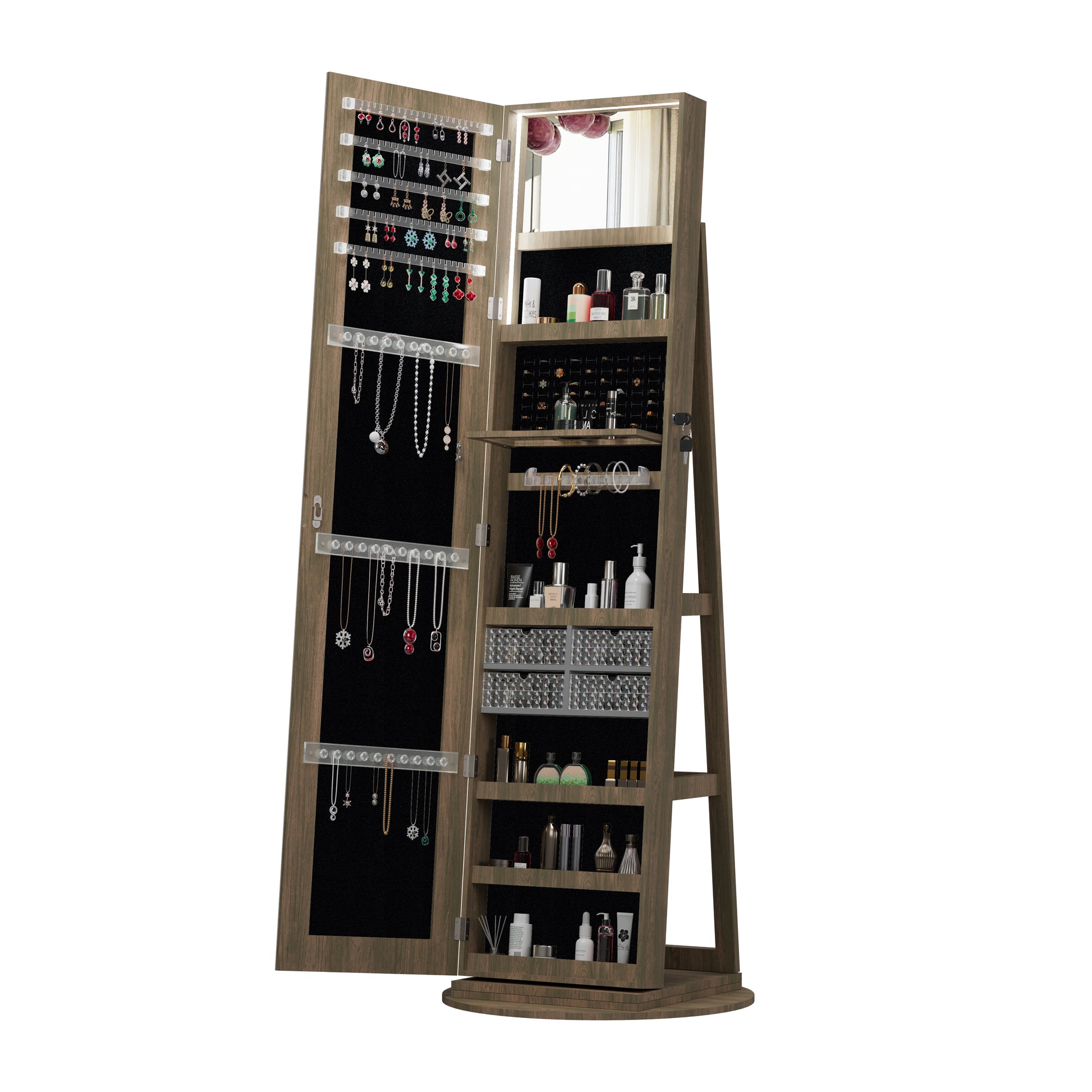 360° Swivel Jewelry Cabinet with Full Length Mirror Lockable Jewelry Storage Cabinet