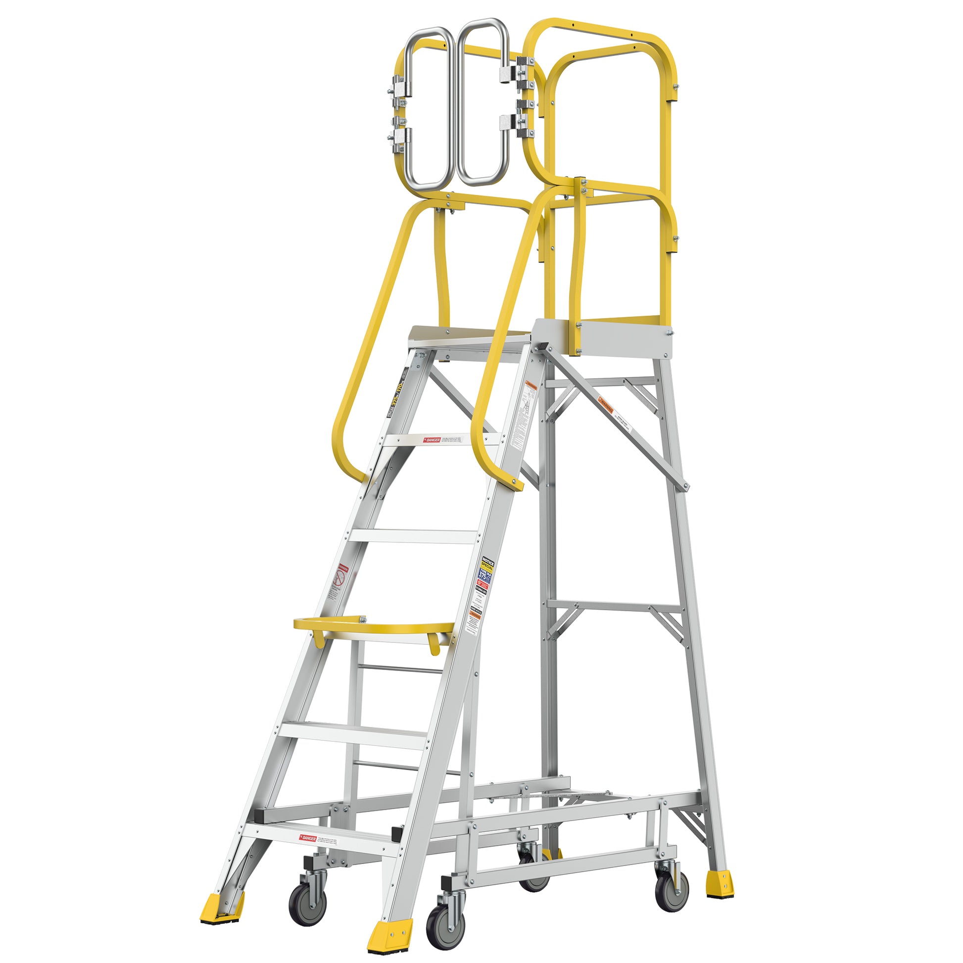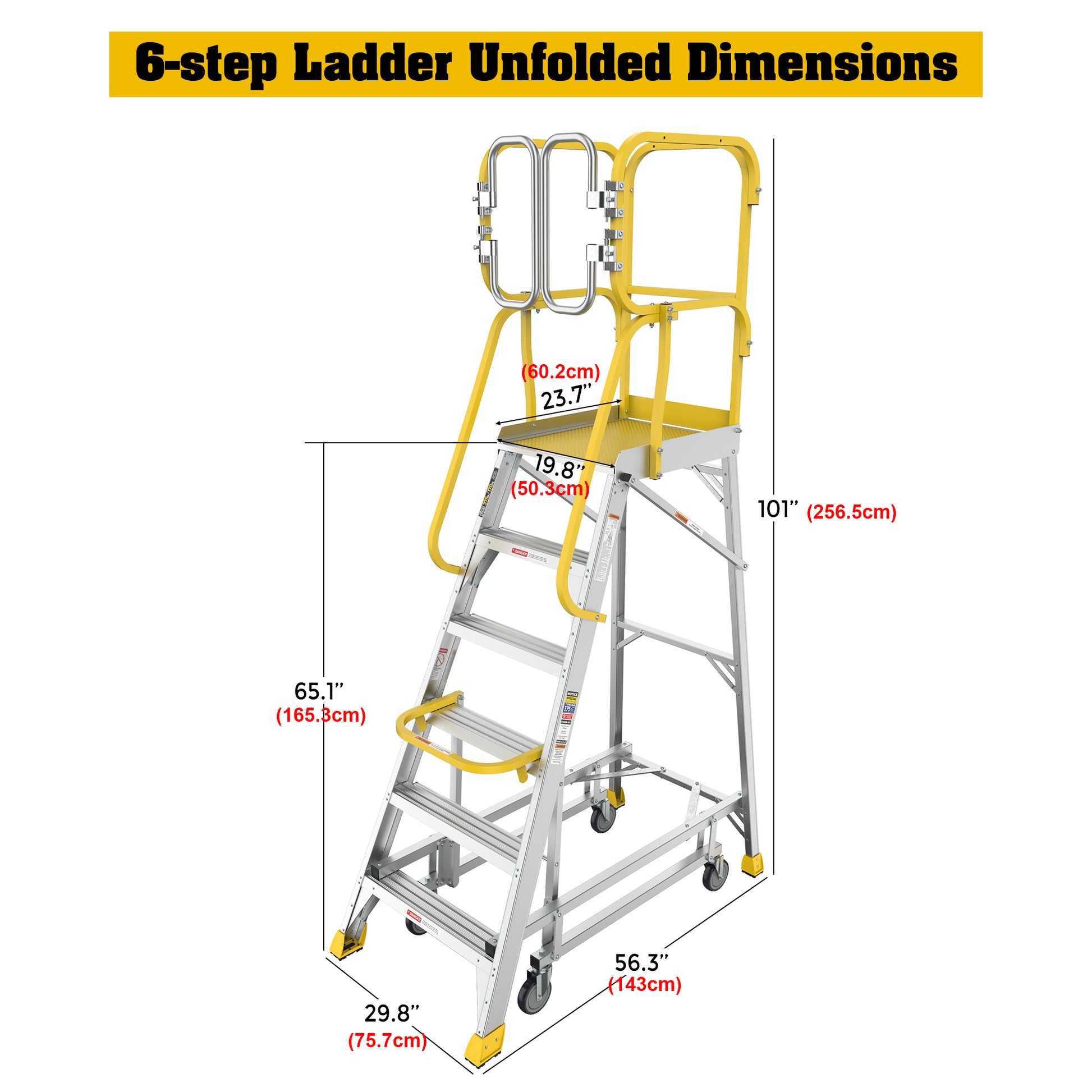 - Large Platform for Safety:20"x24" Extra-large standing surface with 360° guardrail system provides full-body security at height. Features dual crossbar stabilization.