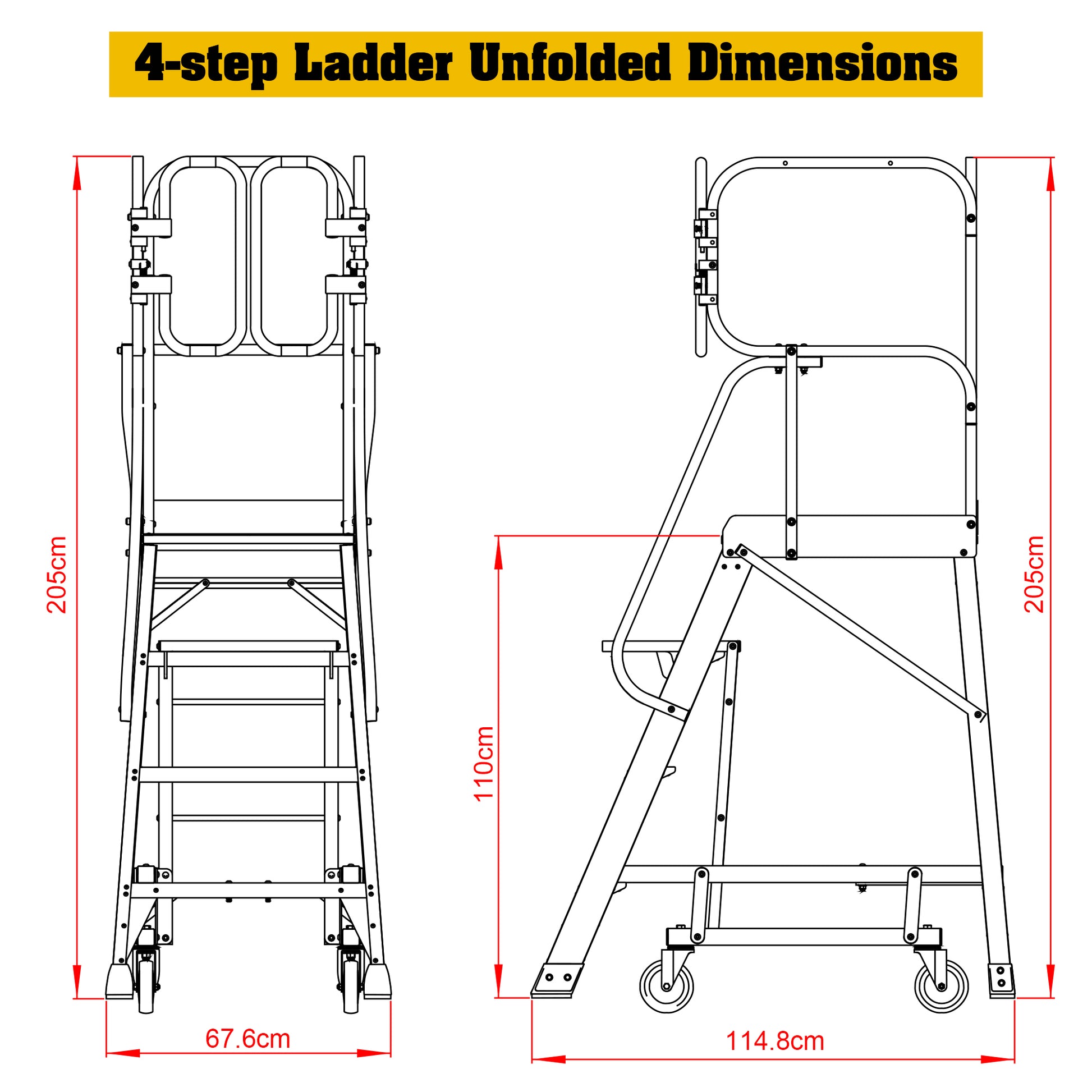- Pro-Grade Traction Control System:Wide 4" deep-rung steps with diamond-pattern anti-slip coating + dual-position safety handrails ensure confident climbing. Meets ANSI A14.7-2020 slip resistance standards.