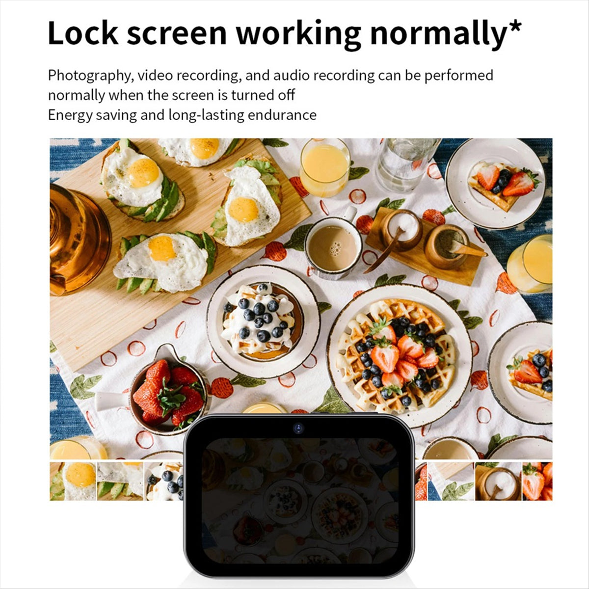 : Watch , listen to music, connect headphones, set alarm, change wallpaper, filter, audio recording, photo, video, computer camera