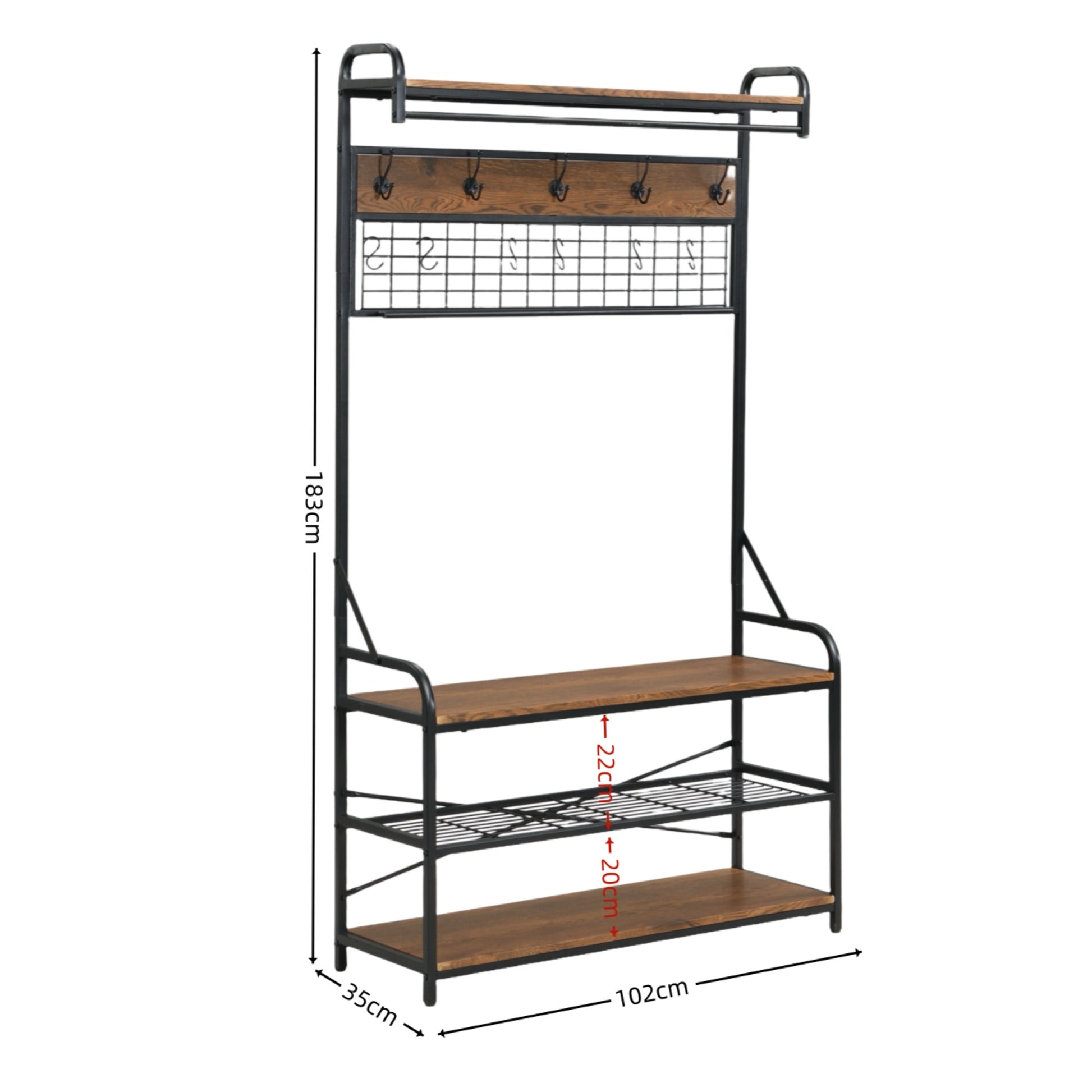 -- Pratical Design: Tidy up your hallway with this ingenious coat and shoe rack. It strikes a perfect balance between its sleek, simple design, industrial pipe style, and effortlessly charming rustic aesthetic.
