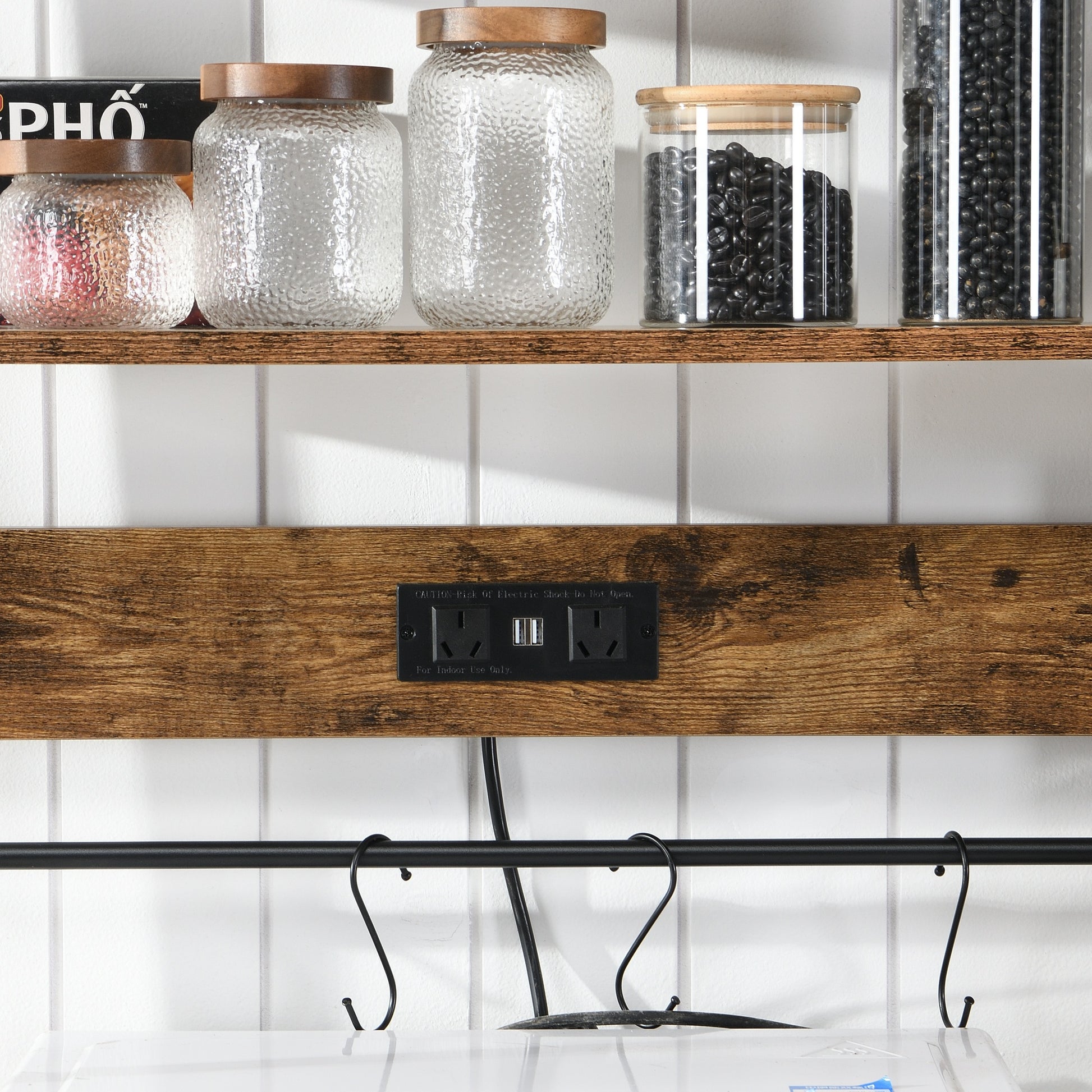 6-Tier Large Bakers Rack with Power Outlets and 12 S-Shaped Hooks, Rustic Brown