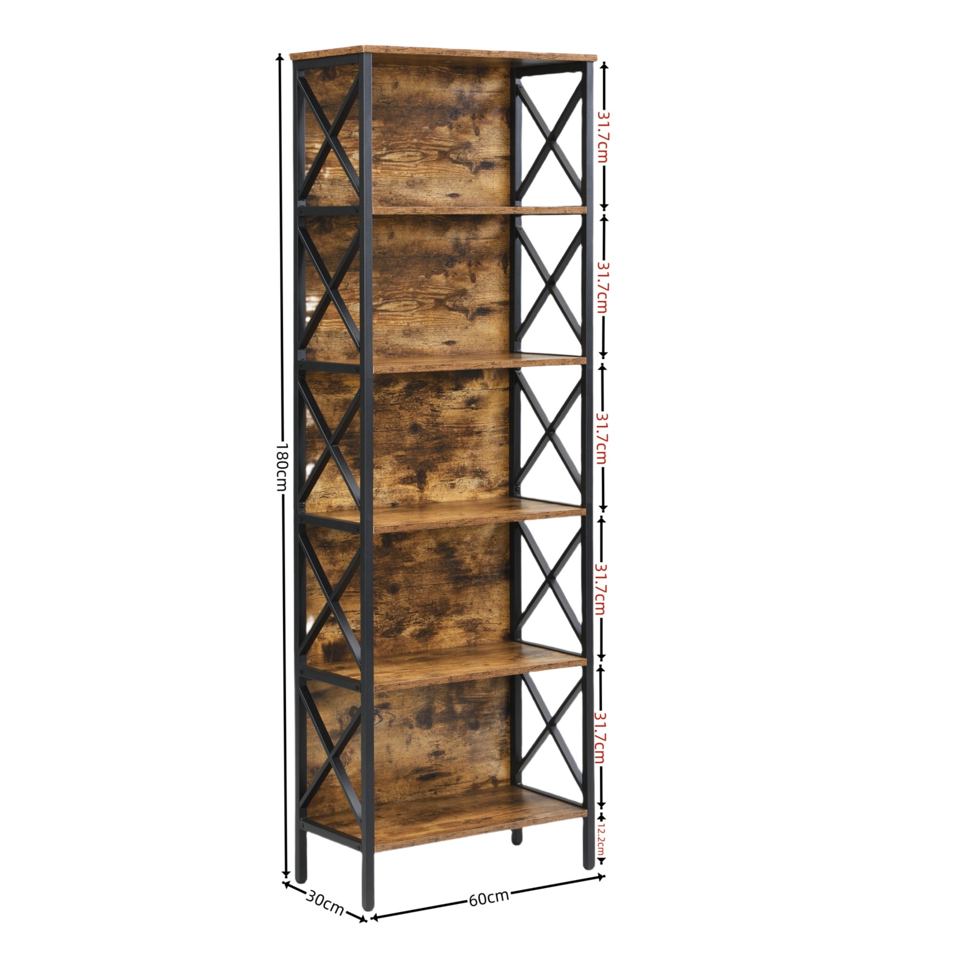 6 Tier Tall Rustic Bookshelf, Industrial Wood Metal Bookshelves and Bookcases, Open Book Shelf for Home Office, Living Room