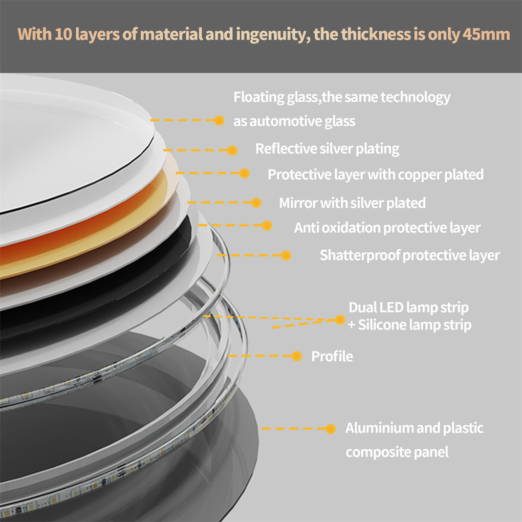 【Anti-fog and Memory Function】The innovative anti-fog feature works super fast and keep your mirror fog-free all the time, making life easier and do not have to worry about wiping the mirror after you take the shower. With memory function, when you turn off the light, next time you turn it on, the lighting will be that one