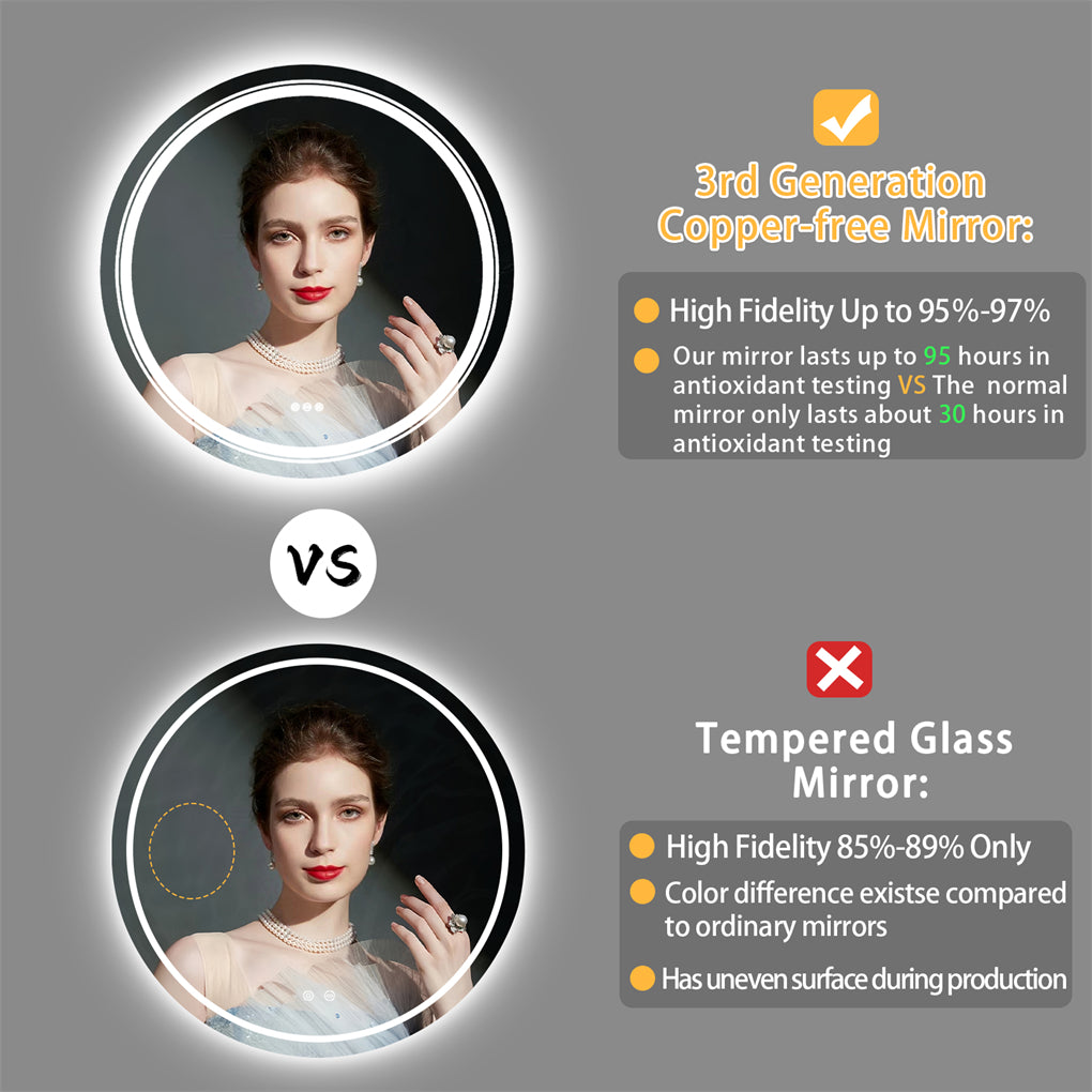 【Ease Of Installation】Round shape mirror offers aesthetics and functionality, which increases a room’s appeal also gives enough light for you. Easy to mount and hang the mirror to the wall near any electric outlet. Support wall switch control, cut the plug to connect to the wall switch wire. It must be done by professionals. Strong package, greatly reduces damage during transportation
