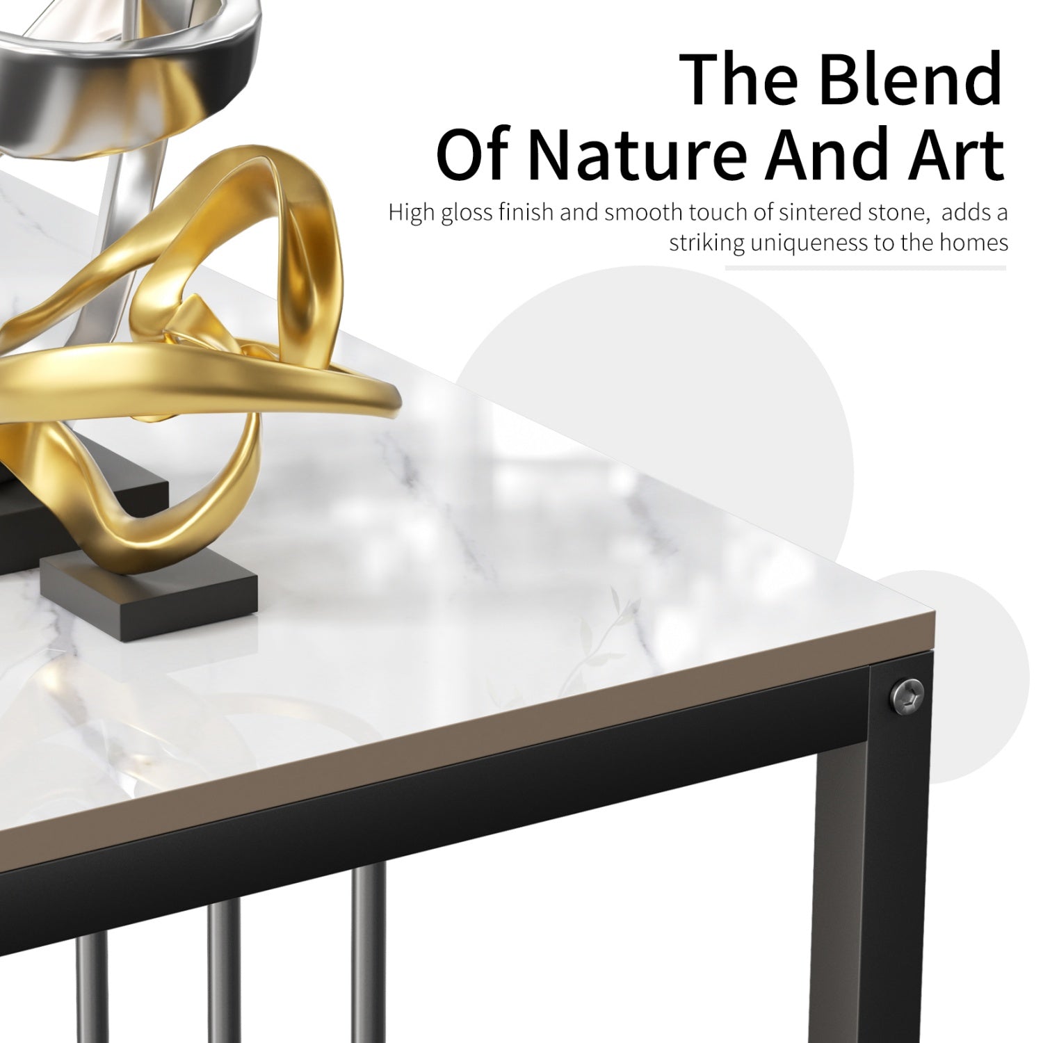 This white stone fired countertop console table has a spacious 80cm long tabletop with a frame treated with high-temperature electrostatic paint, which has strong load-bearing capacity, scratch resistance, high temperature resistance, and is not afraid of fire. It can be placed as home decoration in the living room, bedroom, or entrance for daily use, giving people a warm and cozy feeling.