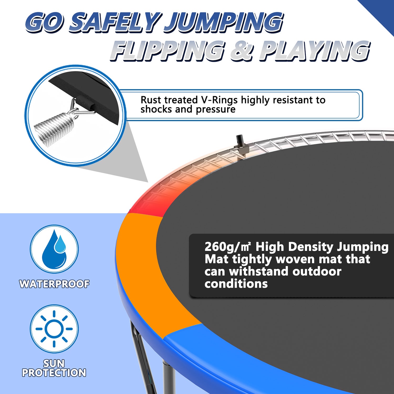 8FT Round Outdoor Trampoline with Net, Basketball Hoop for Trampoline Sunshade Cover