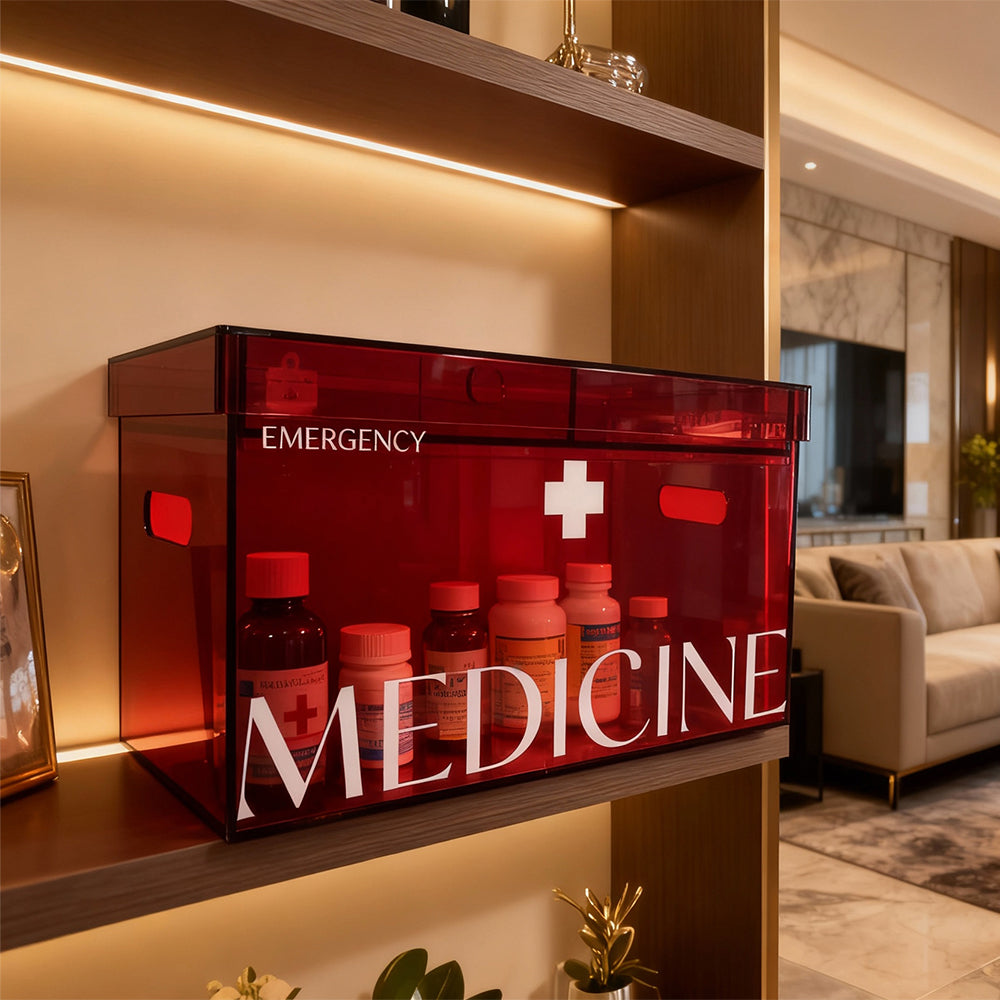 This acrylic medicine box is the preferred choice for home health storage. Compared to ordinary plastic medicine boxes, it has significant advantages in terms of material: acrylic has strong translucency, and the drugs inside the box are clearly visible, so you can quickly find the desired items without repeatedly opening the box; Higher hardness, collision resistance, less likely to deform or crack, and can maintain a good appearance even after long-term use; And it is environmentally friendly and odorless, avoiding harmful substances that may be released by ordinary plastics from contaminating drugs and ensuring medication safety.