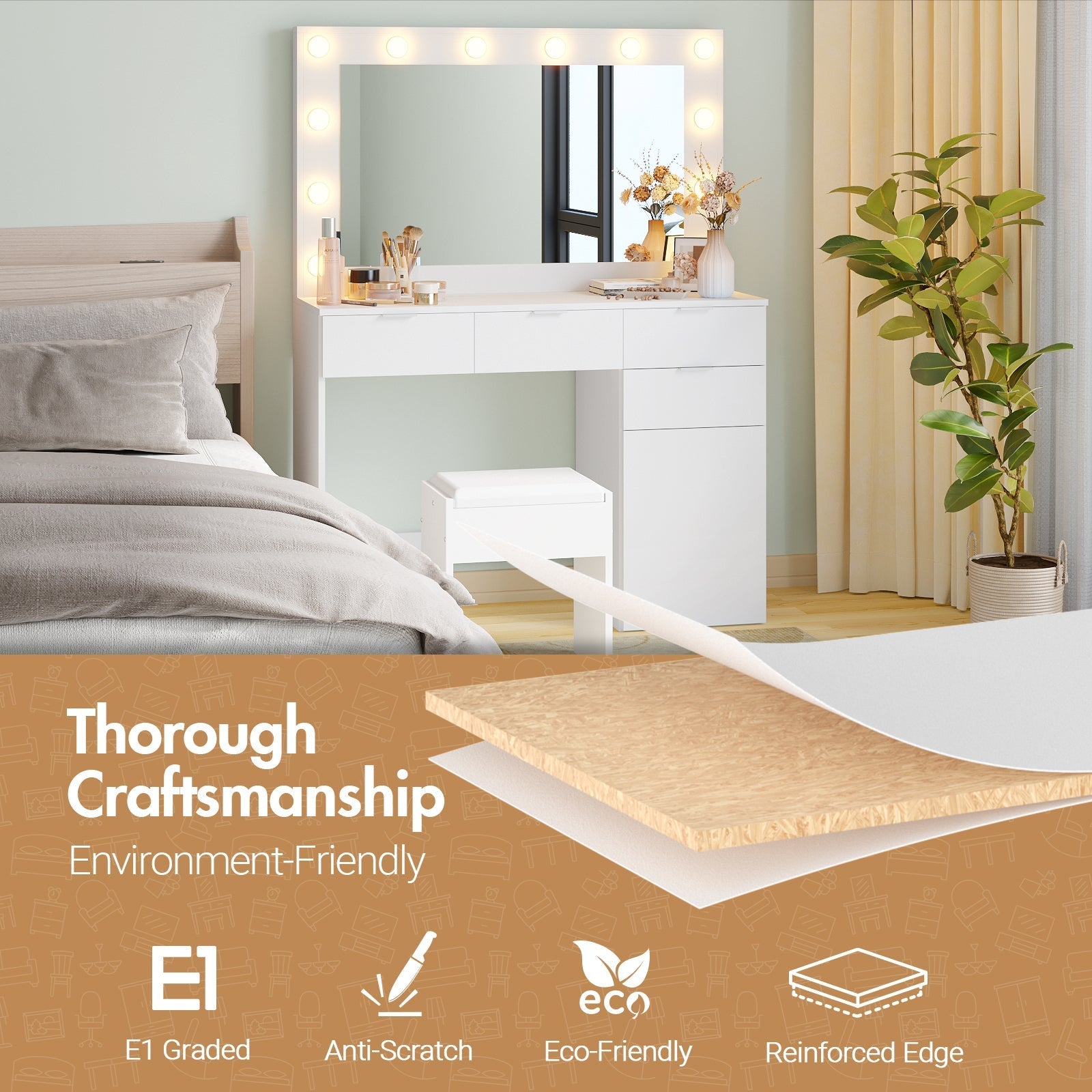 Advwin Dressing Table Stool Set 12 LED Bulbs