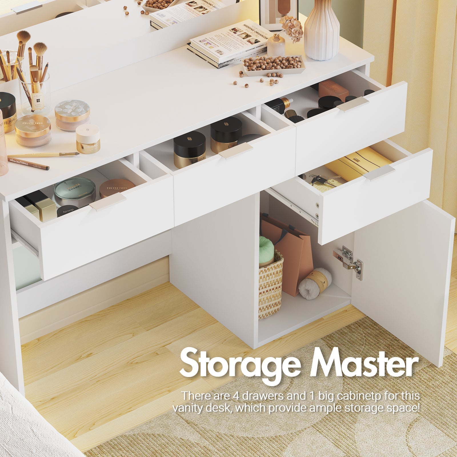 - Ample Storage Space: This vanity offers ample storage with four drawers and one storage cabinet, keeping your cosmetics, jewelry, and accessories organized and within easy reach. Say goodbye to cluttered countertops and find everything you need at your fingertips.