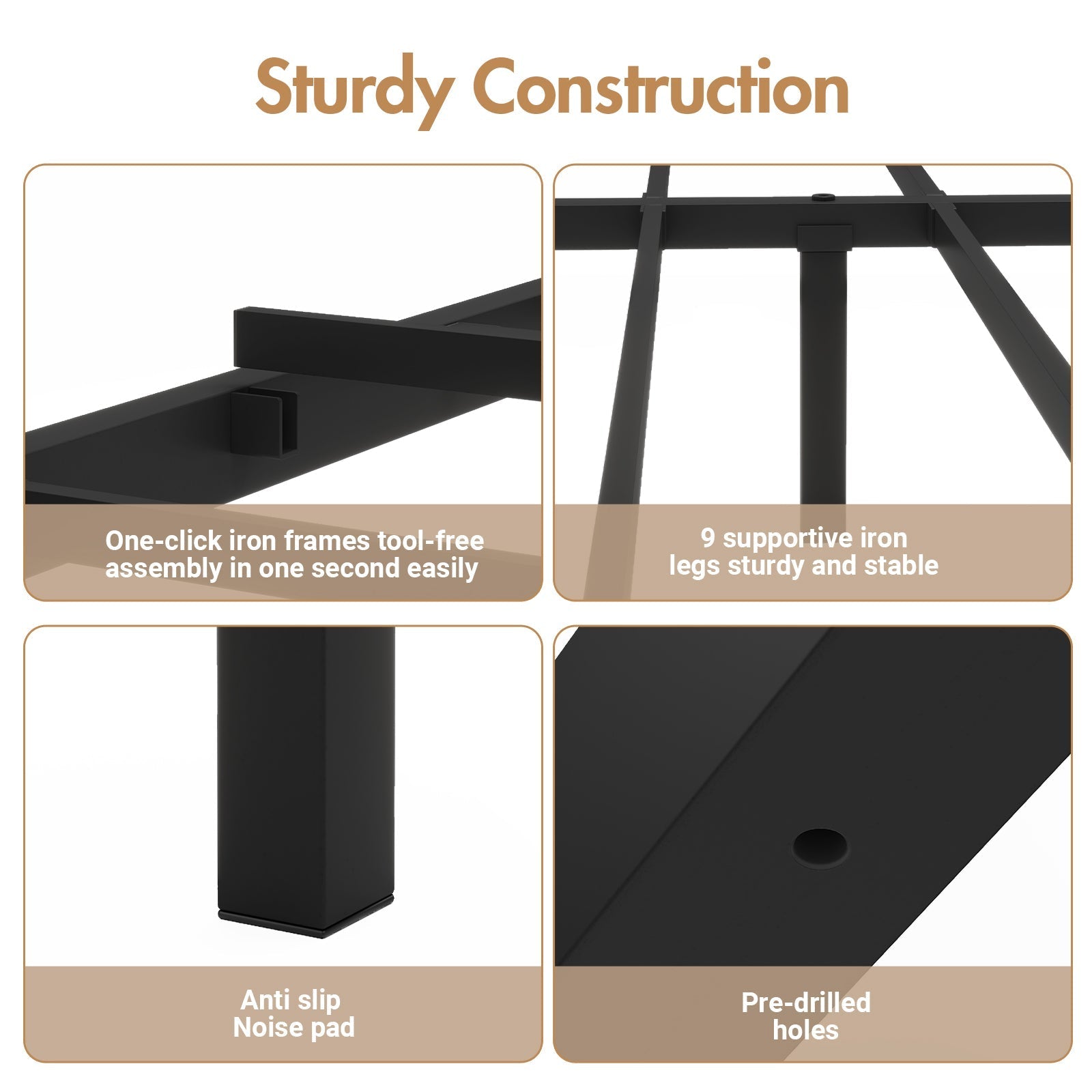 - Strong Consturction: The sleek black design fits perfectly with most bedroom decor, The full metal bed frame is incredibly sturdy and durable, providing a solid foundation for your mattress. And heavy-duty reinforced metal bars with thicker materials ensure stability and 300 kg weight-bearing capacity, standing the test of time.