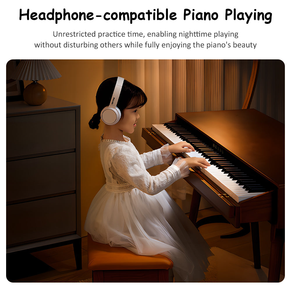 - Custom-crafted wooden keybed for premium acoustic feel