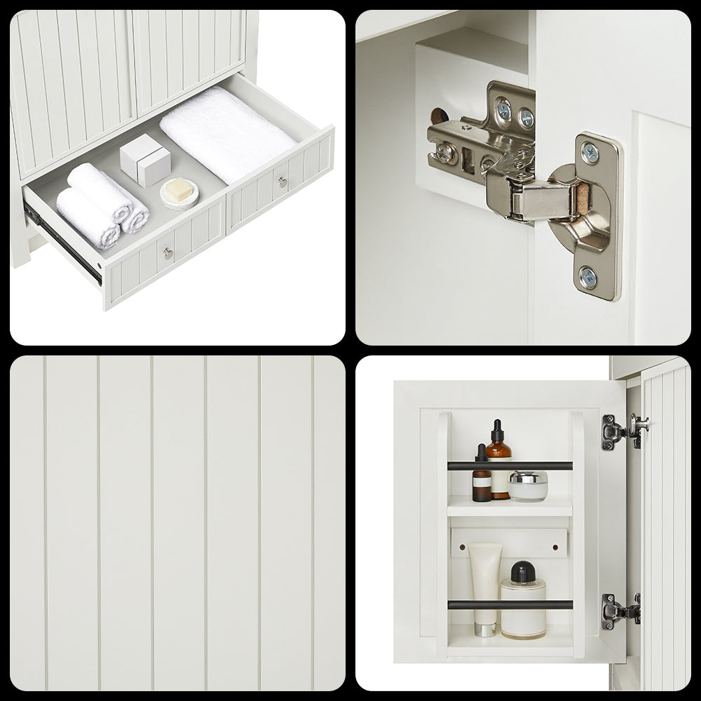 - A lower storage drawer provides much needed function and can be used for stowing items like extra toothpaste, hair brushes, and other bathroom essentials to help you get ready in the morning and great night