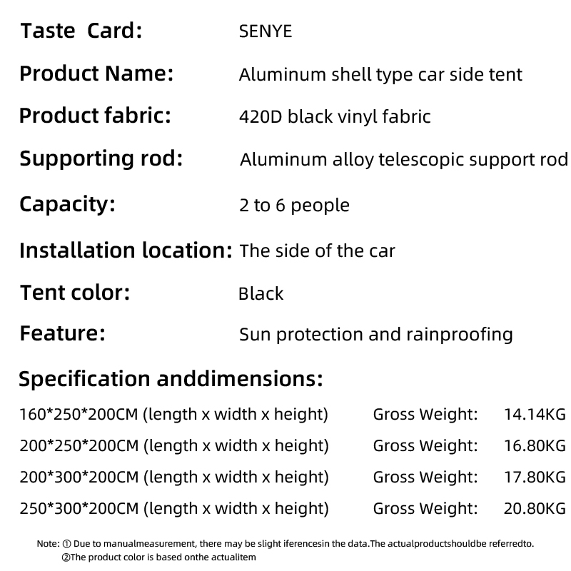 Car-side tent for outdoor camping, SUV side-mounted awning tent with aluminum alloy and black rainproof sunshade