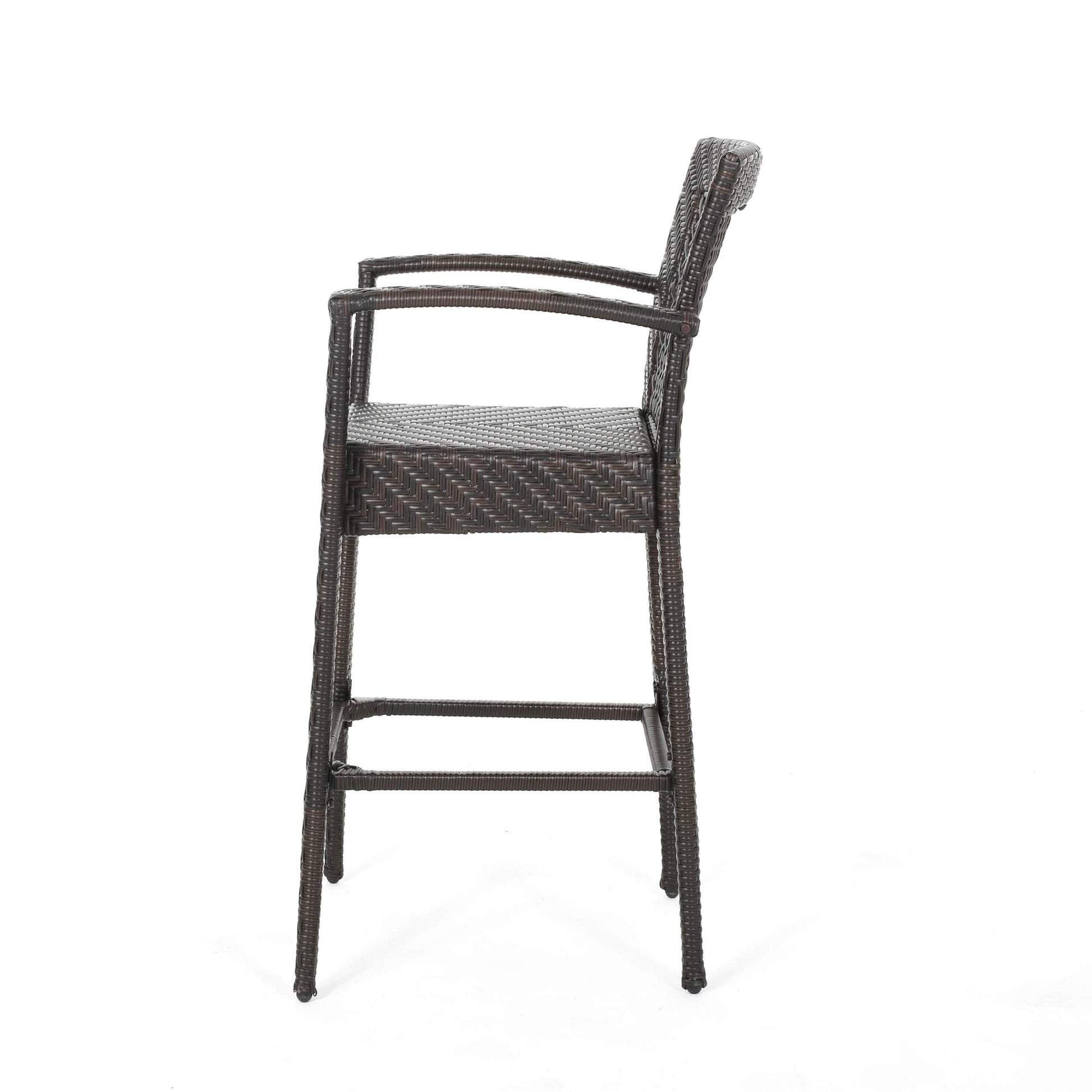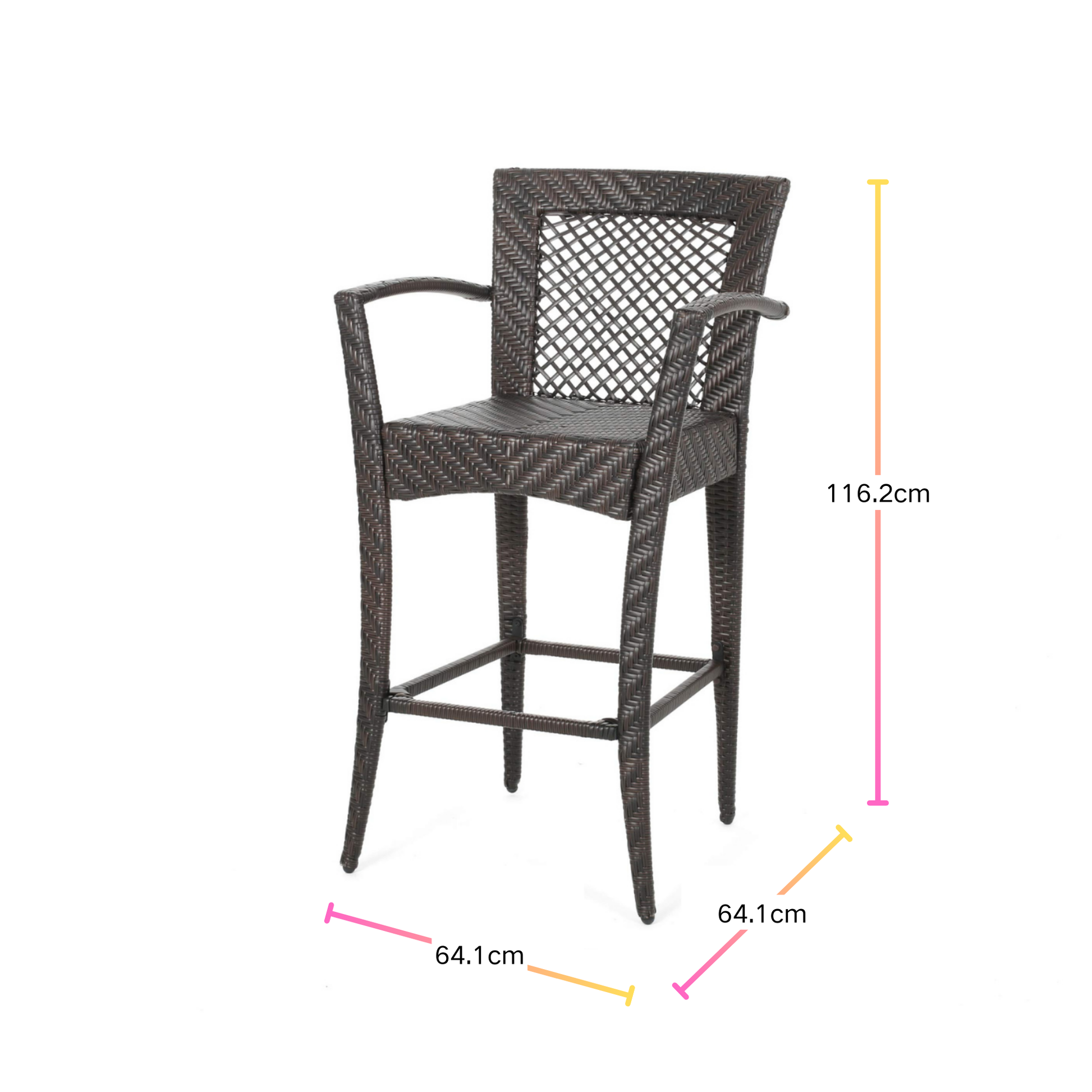 ● Stylish Woven Bar Chair——DesignIntricate lattice backrest and smooth armrests create a modern, textured look—ideal for outdoor bars, patios, or poolside counters.