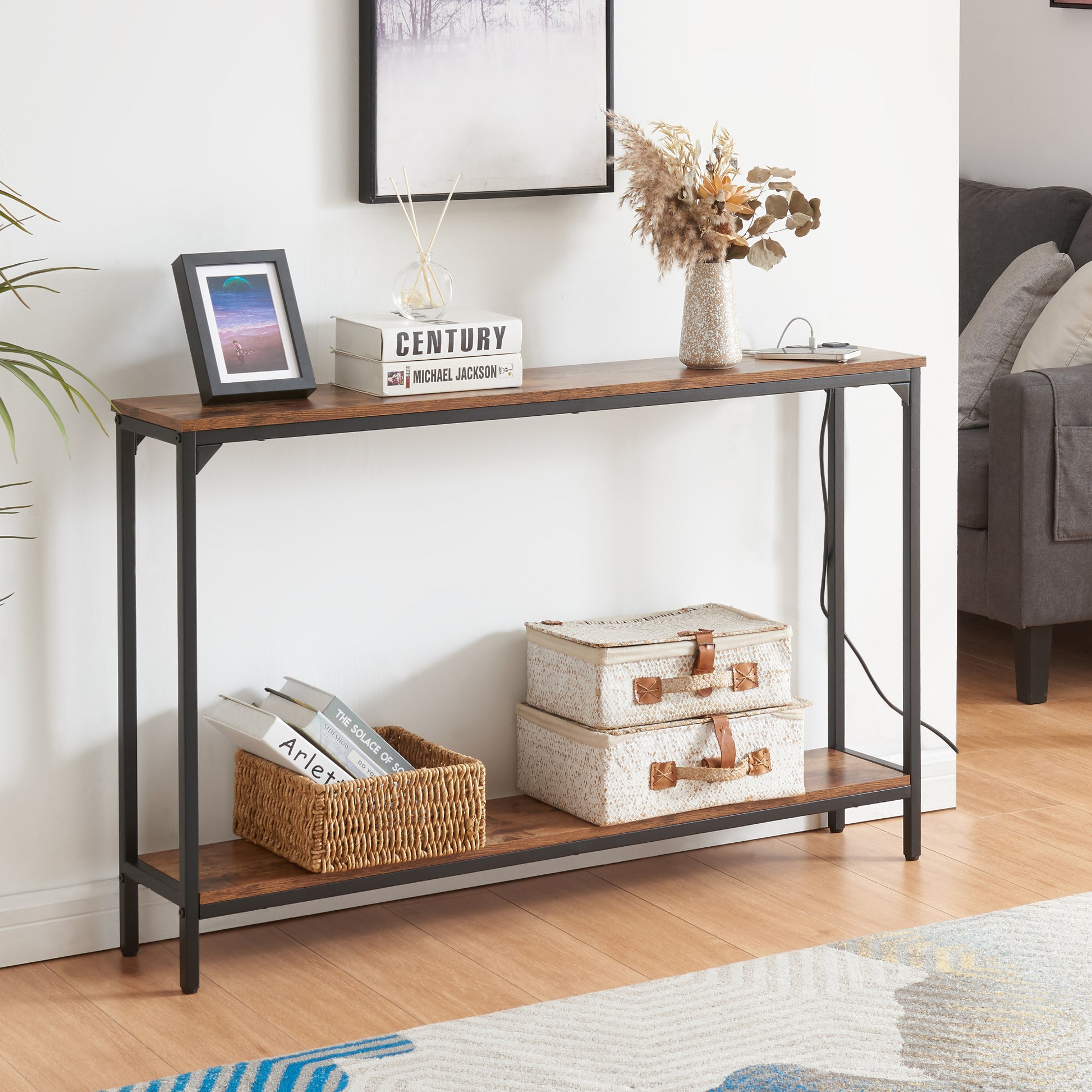 Console Table with Charging Station, 2-Tier Narrow Sofa Table