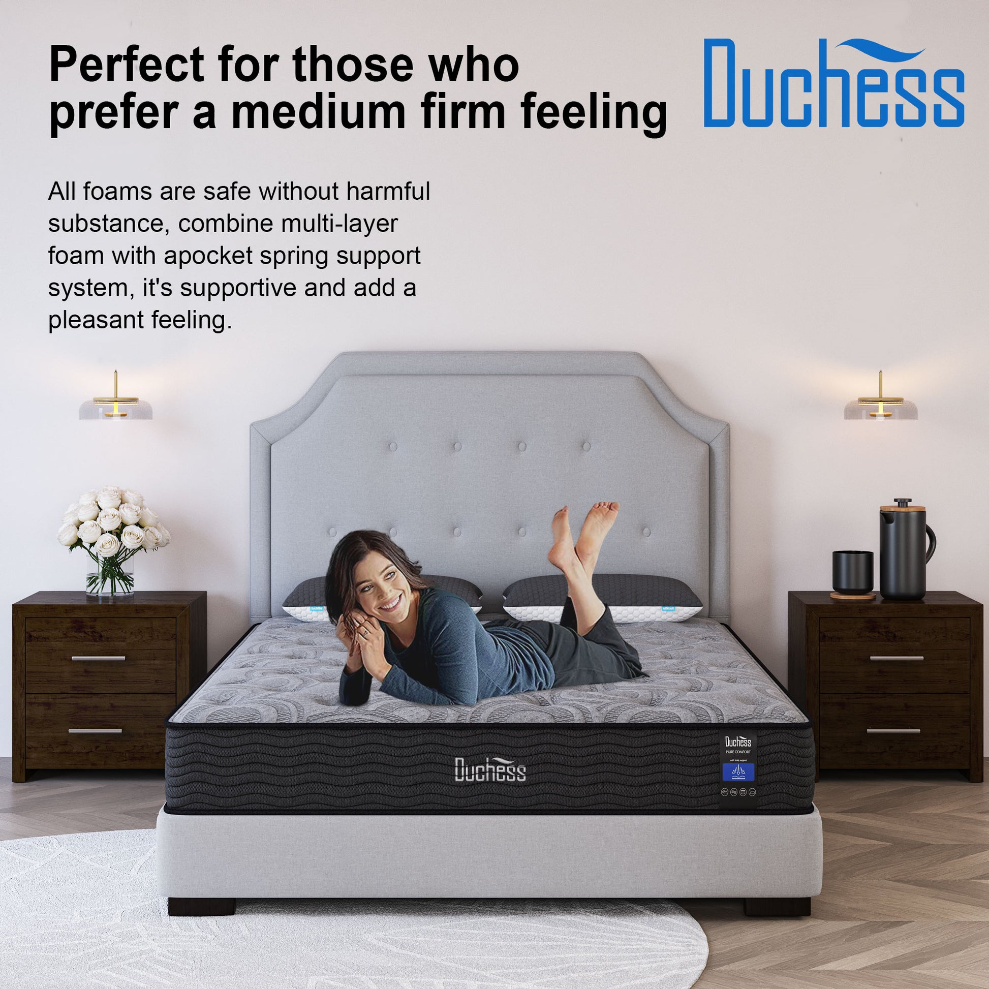 Perfect balance of support & comfort-Duchess mattress constructed with individually wrapped innerspring and Gel memory foam. Individual pocket Spring offers all-over and average support. The high density foam layer make you feel comfort, The gel memory Foam layer for slowly adjusts to body weight & temperature, it provides a buffer so you never feel the coils for optimal comfort, giving you better quality sleep on this mattress.