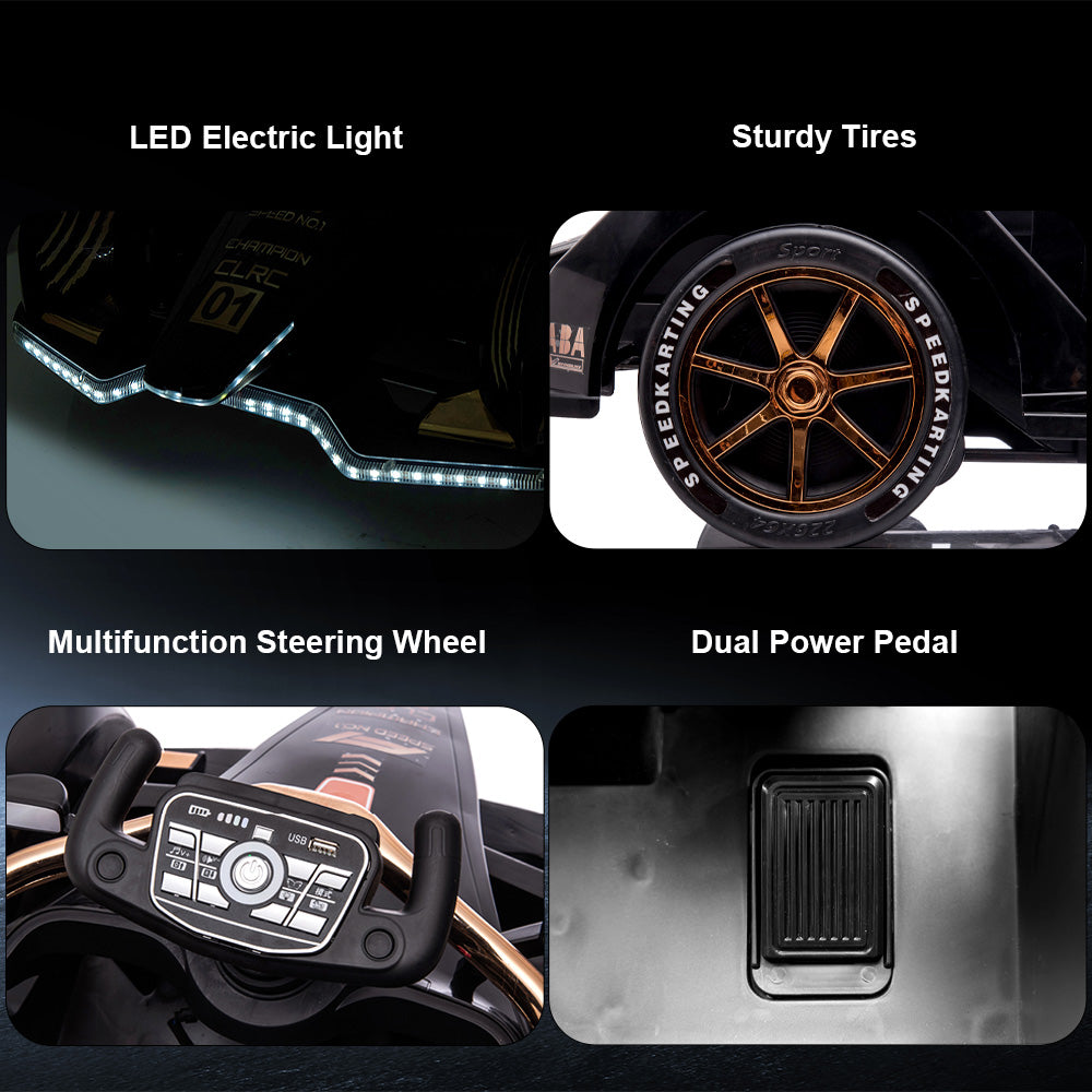 The Eeeza Electric Go-Kart is built for young racers aged 3–8, combining striking design with powerful dual motors, full LED lighting, and an MP3 entertainment system. Whether zooming around the driveway or cruising in the park, it delivers a thrilling and immersive driving experience for kids who love speed and style.