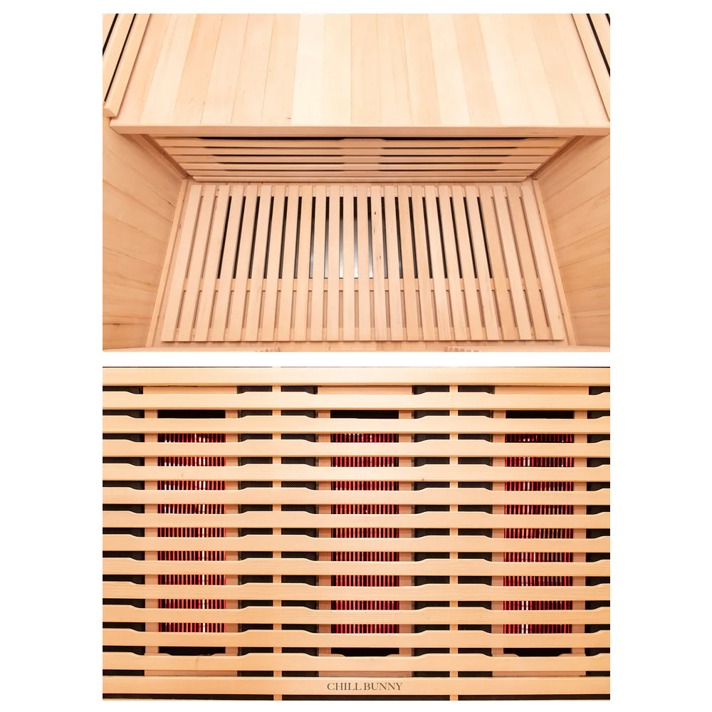 - Experience relaxation and rejuvenation with the Chill Bunny 2 Person Infrared Sauna.