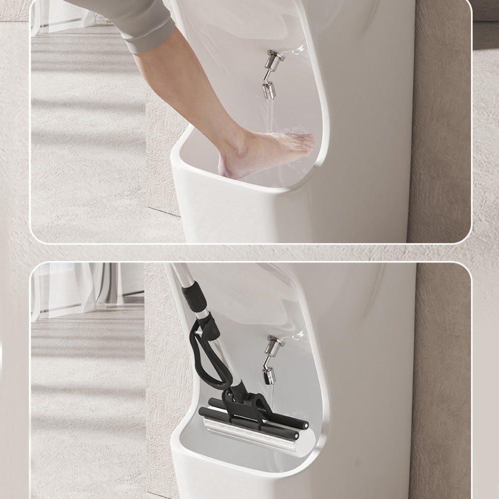 Equipped with a concealed foot pedal flush mechanism, allowing users to activate the urinal flush without touching any surface—cleaner and more convenient.