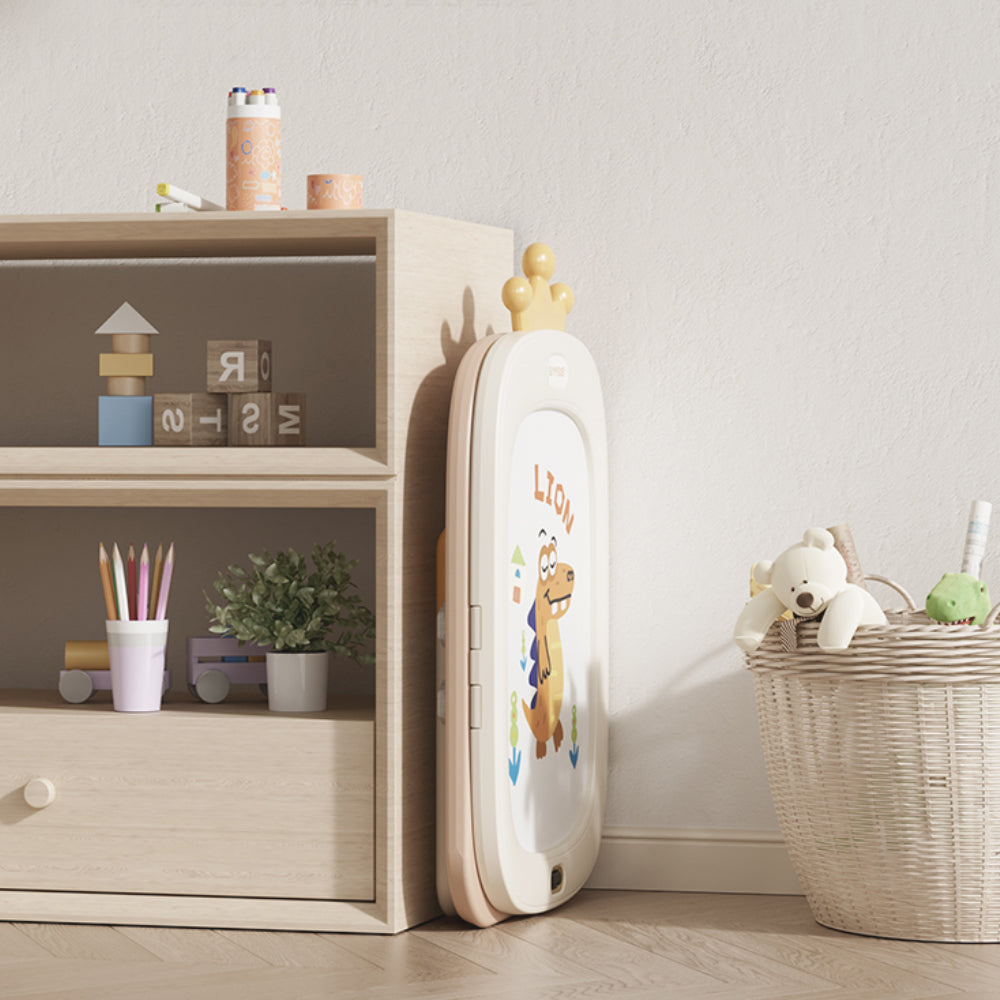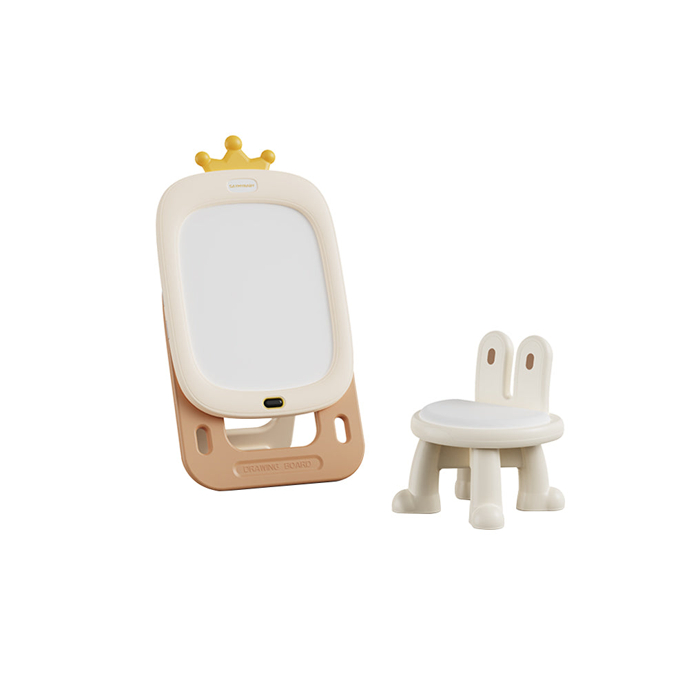Includes a drawing board, five watercolor pens, a magnetic blackboard eraser, a set of number stickers, a pair of sleeve protectors, and an apron.