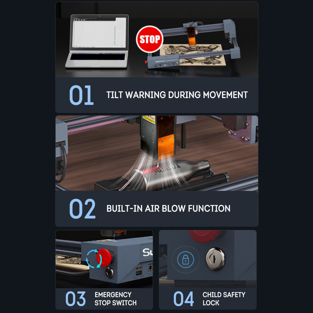- Dual fan cooling for the laser head, extending its lifespan by 2 times