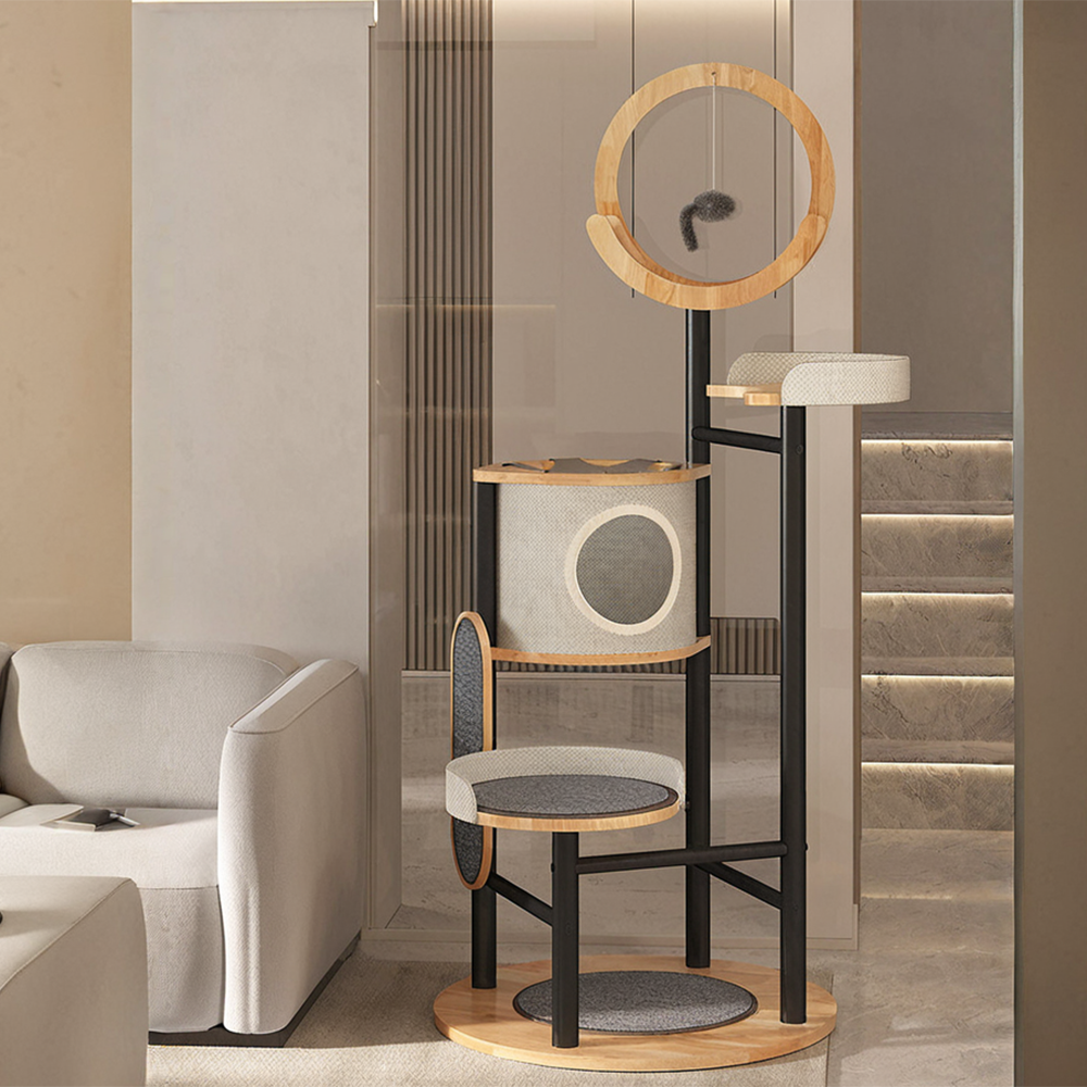 - Versatile functional areas: includes various functional parts like a shaking cradle, viewing platform, lazy hammock, mysterious cat cave, vertical scratching board, napping board, and circular scratching mat, meeting different needs of cats for playing, resting and scratching