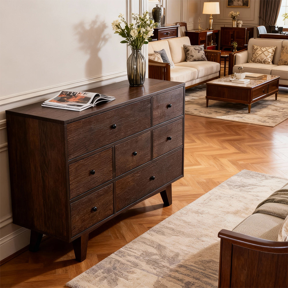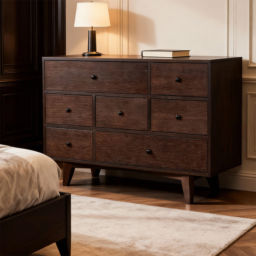 Eeeza Retro Birch 7-Drawer Dresser – Wide Storage with Mid-Century Elegance
