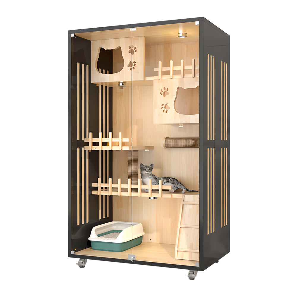 Give your feline friend a luxurious private haven. This thoughtfully designed cat villa combines modern aesthetics with practical features to support your cat’s natural instincts — climbing, hiding, and resting — all in one safe, mobile, and easy-to-maintain enclosure.