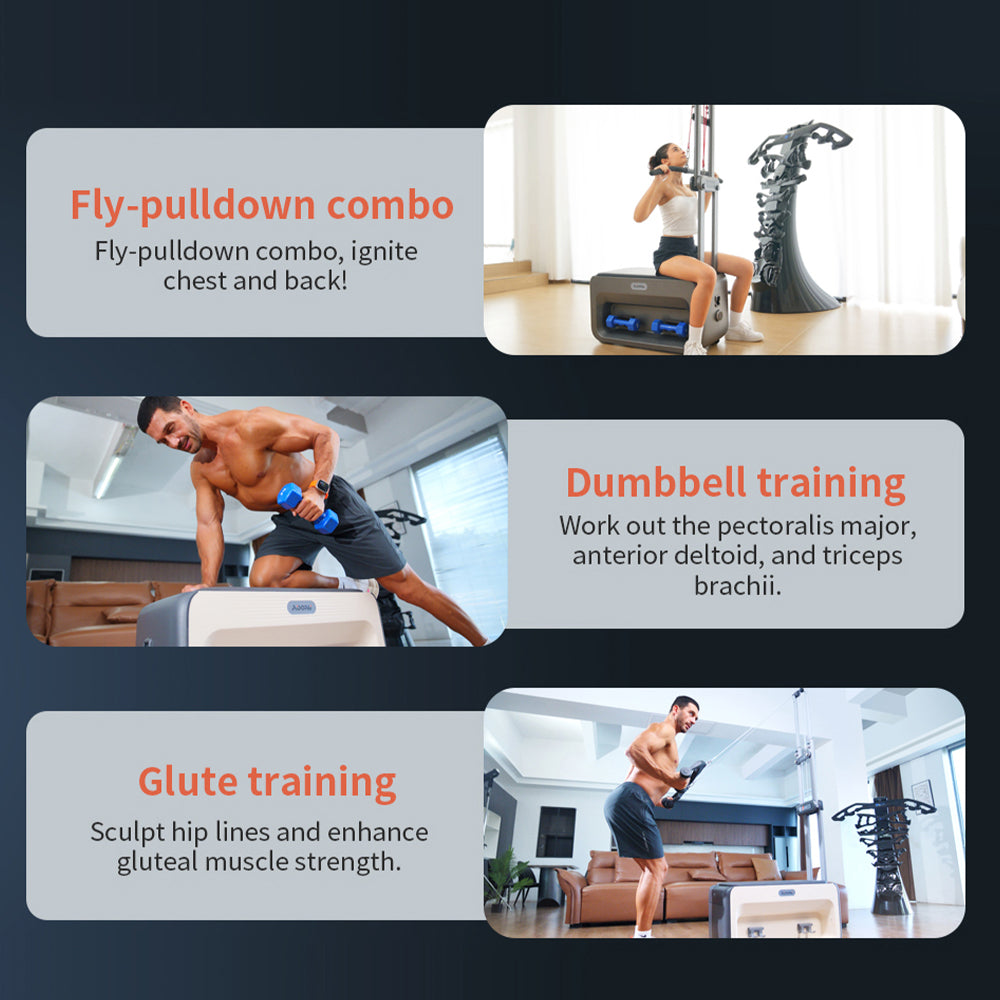 - Motorized weight adjustment (5kg-80kg range) with precision control