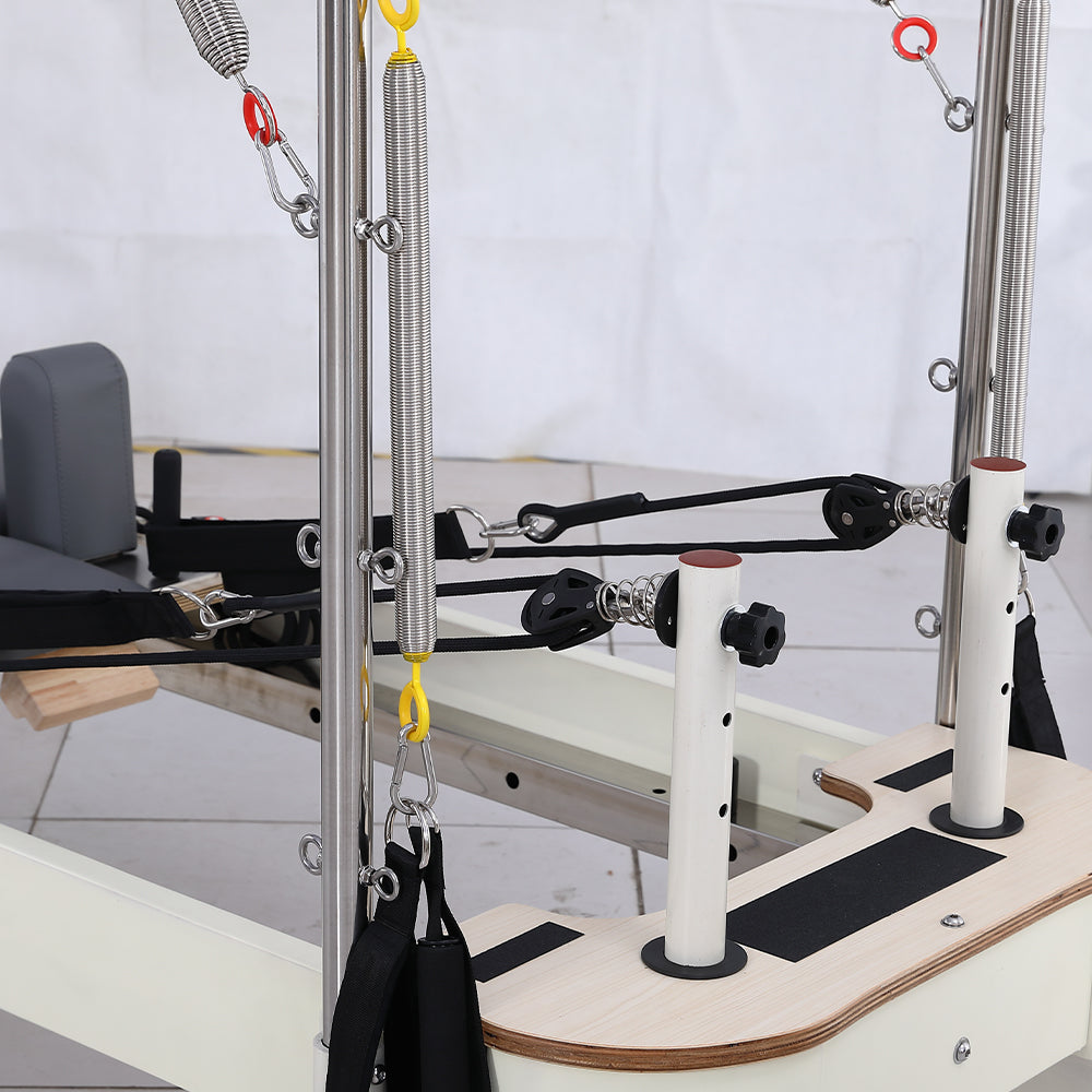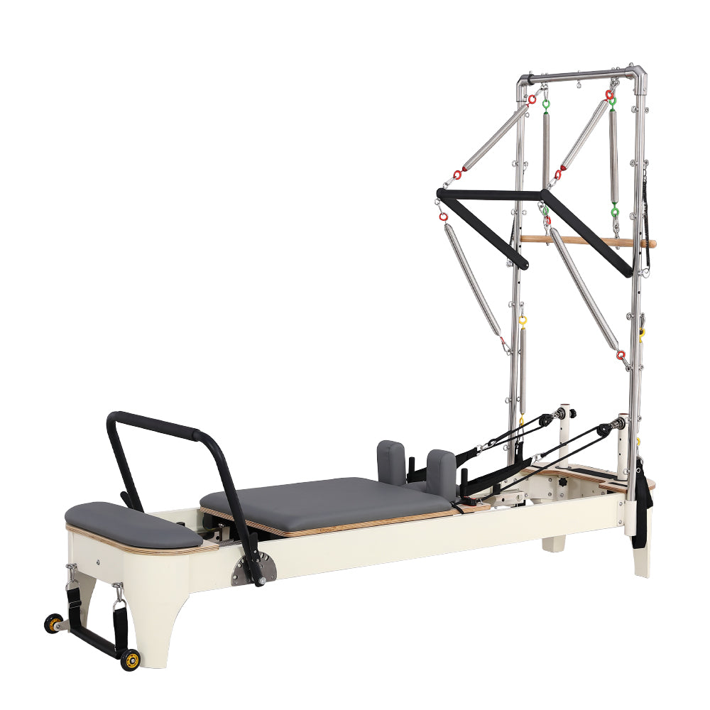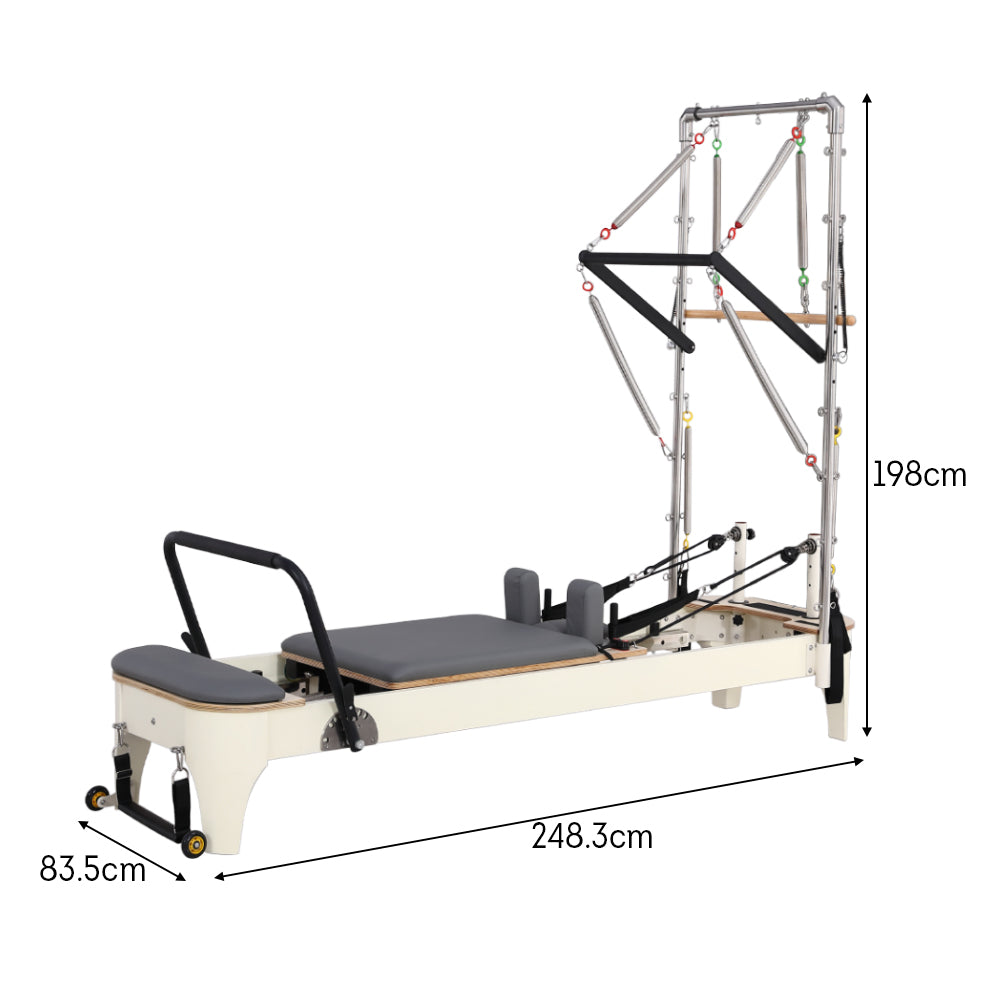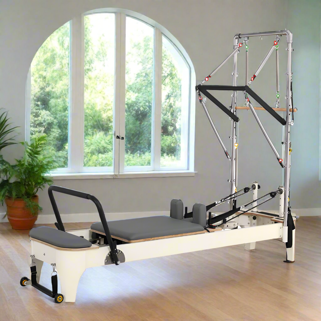 Eeeza Oak Wood Frame Pilates Reformer with Half Trapeze Table - Grey