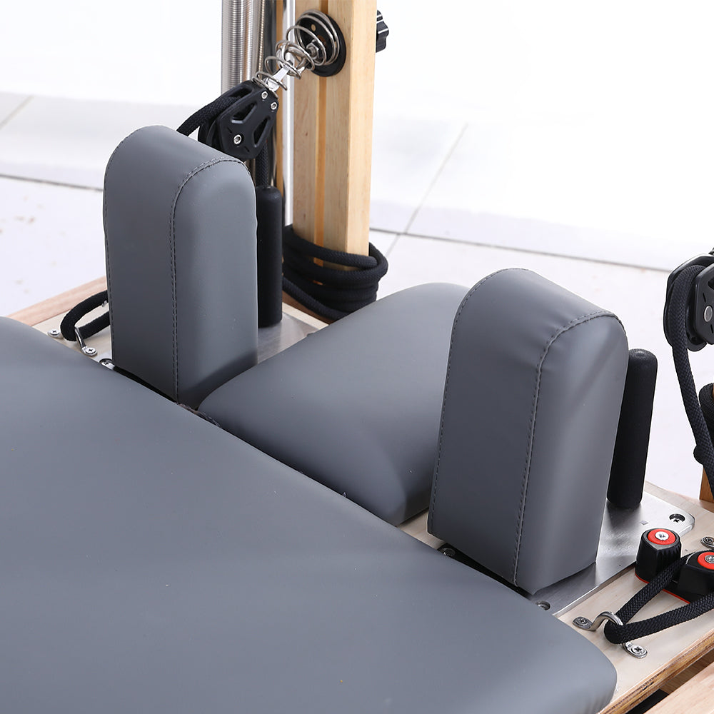 Eeeza Oak Wood Frame Pilates Reformer with Half Trapeze Table - Grey