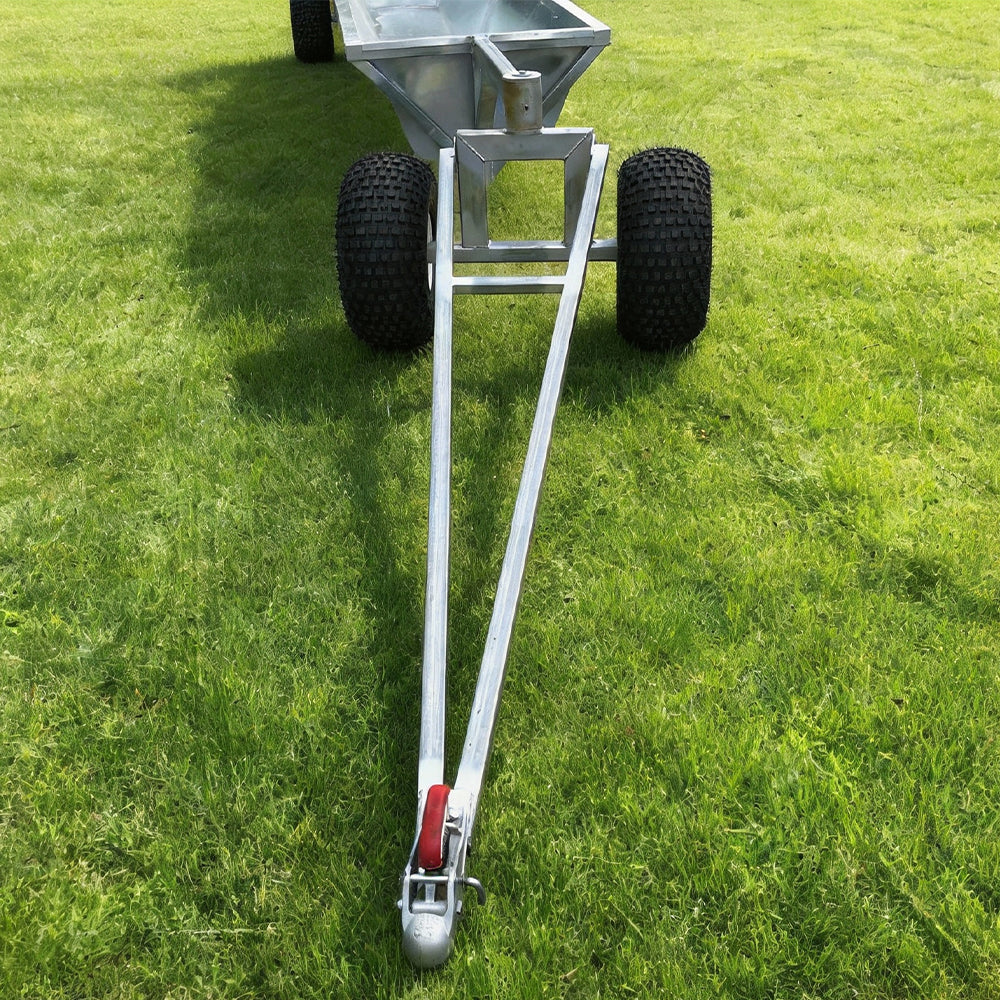 - They feature an ATV quick hitch and a front turntable able to rotate nearly 180 degrees. A strong sub-frame supports the trough and the capacity is approximately 5000 litres