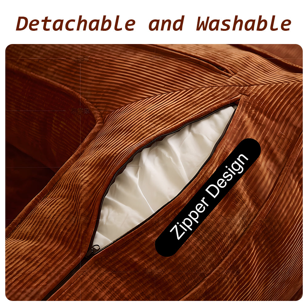 Zippered corduroy cover is fully removable and machine washable, making daily upkeep hassle-free.