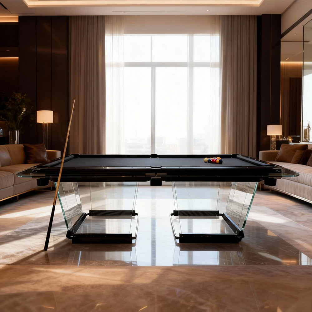 Eeeza Sleek and Stylish Billiard Table with Glass Leg Frame