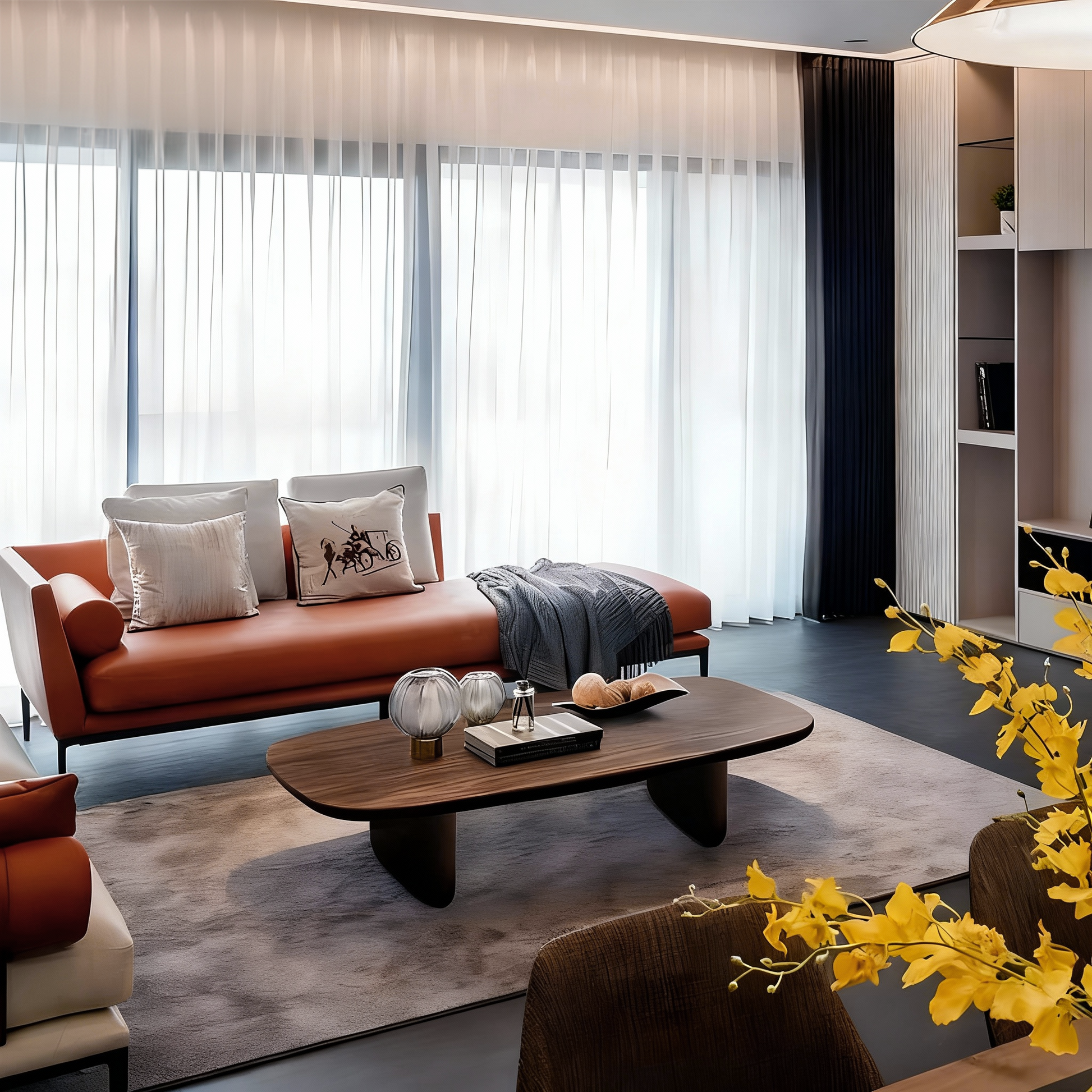 Blending architectural form with organic material, this modern coffee table anchors your living space with quiet elegance. It’s a statement piece that doesn’t shout, perfect for contemporary homes.