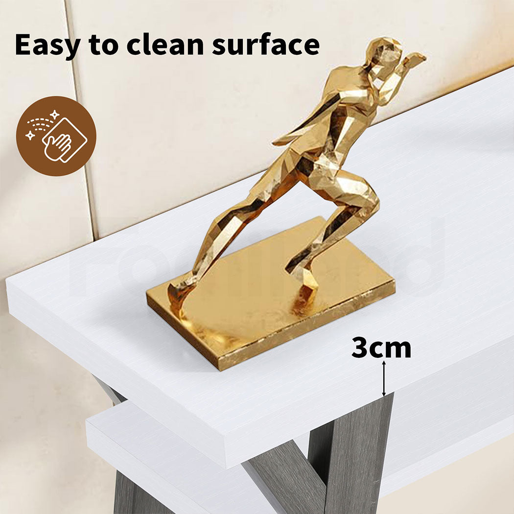 FAMILAND CONSOLE TABLE – Searching for an entryway table that combines functionality with style? The Familand hallway table is the perfect solution. This 107cm, three-tier storage table enhances your hallway, creating the illusion of more space with its lengthwise design.