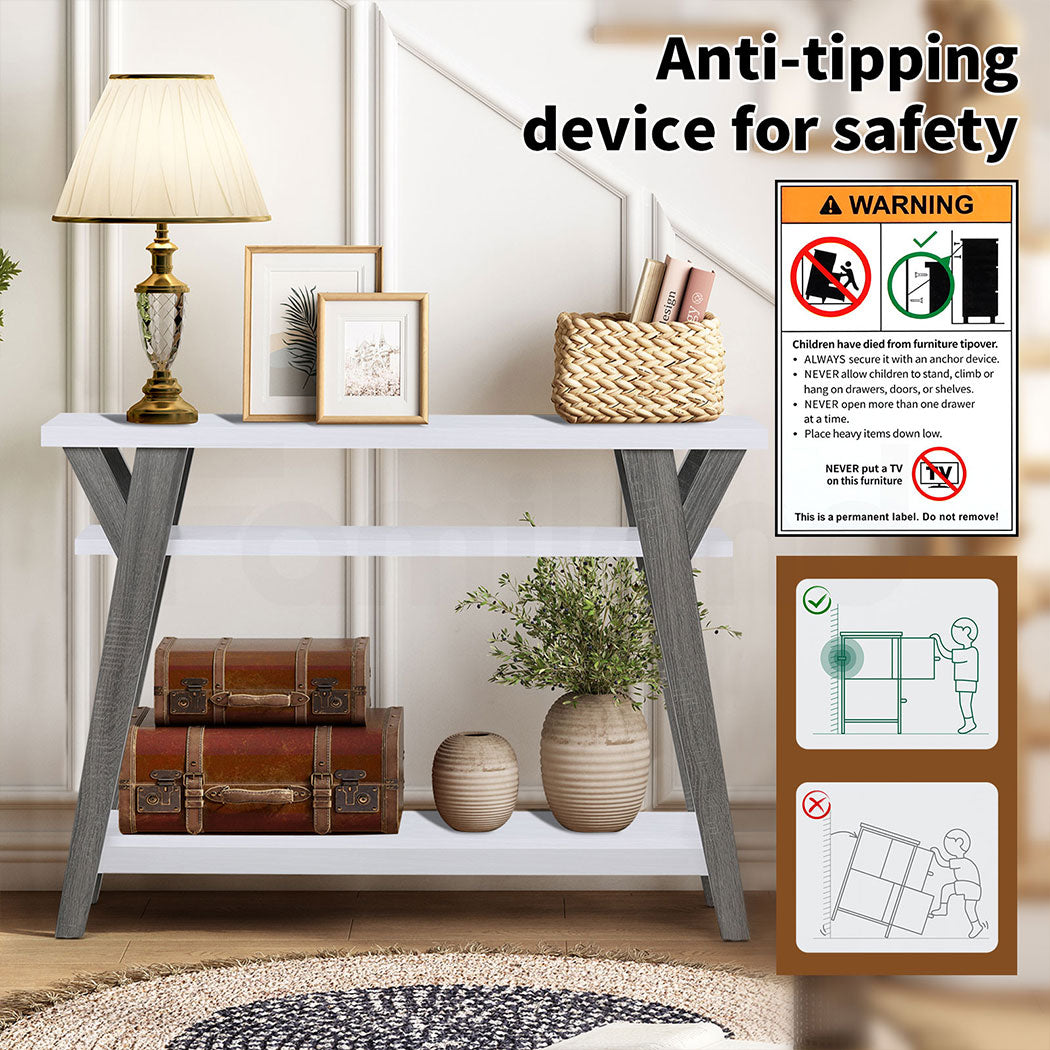 Familand 107cm Wooden Console Hallway Table with 3-teirs Ample Storage Shelves - Entryway Tables