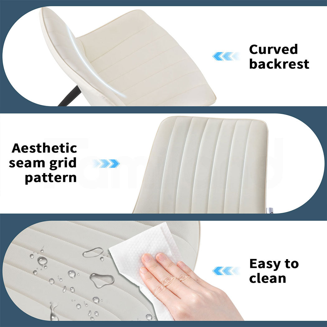 Familand 2x Dining Chairs Faux Leather Upholstered Kitchen Living Room Chair Metal Cream