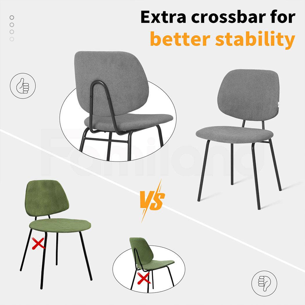 FAMILAND DINING CHAIRS SET OF 2 -- Enhance your dining environment with our newly released dining chairs from Familand. Presenting the utmost in comfort and style - our Corduroy kitchen dining chairs featuring sleek metal legs. Meticulously designed to seamlessly blend into any dining area, this chair exudes classic , elegant and modern expression to elevate your dining experience.