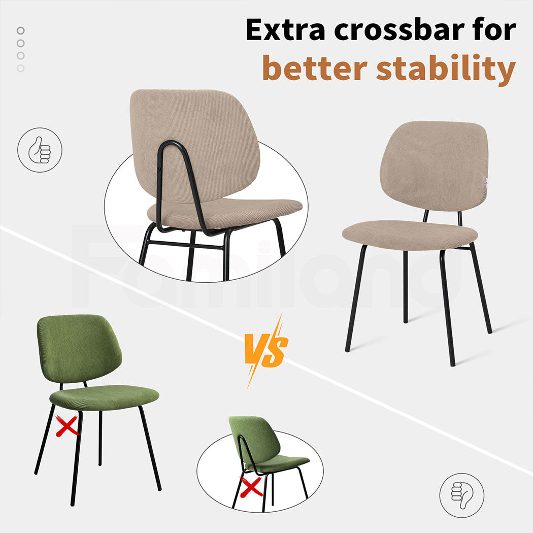 FAMILAND DINING CHAIRS SET OF 2 -- Enhance your dining environment with our newly released dining chairs from Familand. Presenting the utmost in comfort and style - our Corduroy kitchen dining chairs featuring sleek metal legs. Meticulously designed to seamlessly blend into any dining area, this chair exudes classic , elegant and modern expression to elevate your dining experience.