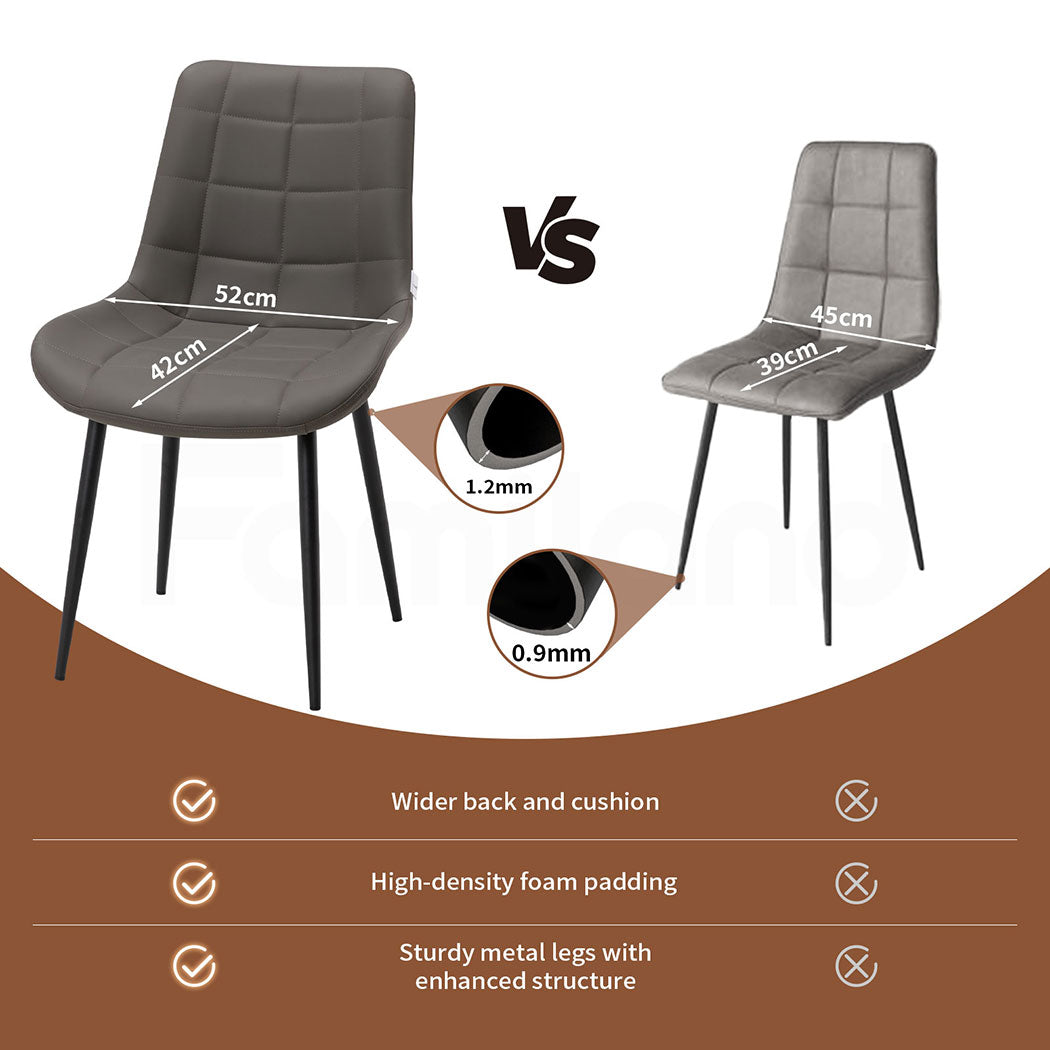 ---【Comfortable Seating】FAMILAND dining chairs offer enhanced comfort with a spacious 52 x 42 cm (W x D) seat, larger than the typical 45 x 39 cm options on the market. The ergonomic backrest, U-shaped cushion, waterfall edge design, and soft padding provide superior comfort and help relieve stress during extended periods of sitting.