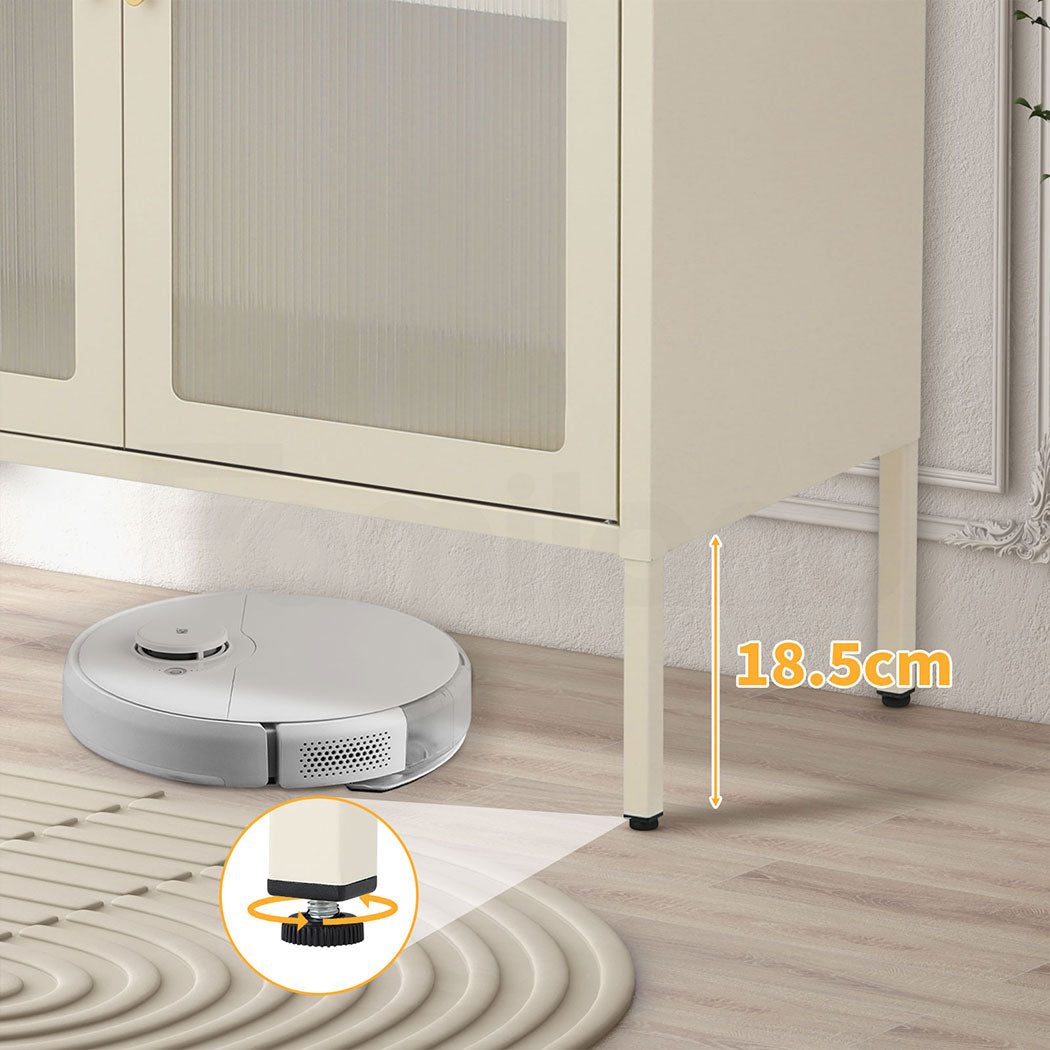 --【Practical & Safe Features】Equipped with adjustable feet, this accent storage cabinet remains stable on uneven surfaces, offering maximum adaptability. The raised cabinet legs allow for easy cleaning underneath, even accommodating robot vacuum cleaners. For added safety, the cabinet includes anti-tipping accessories, ensuring peace of mind.