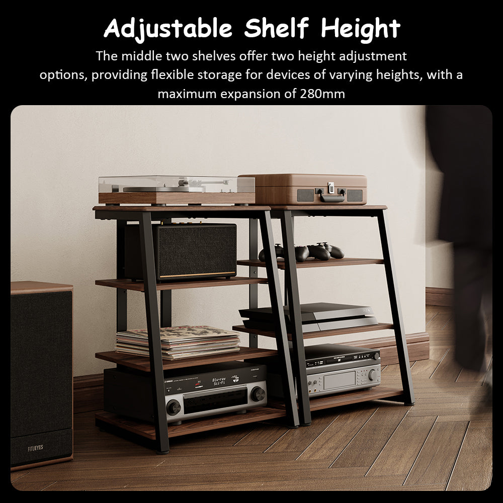 FITUEYES HiFi Audio Rack – Modern Vintage Media Stand with Adjustable 4-Tier Shelves