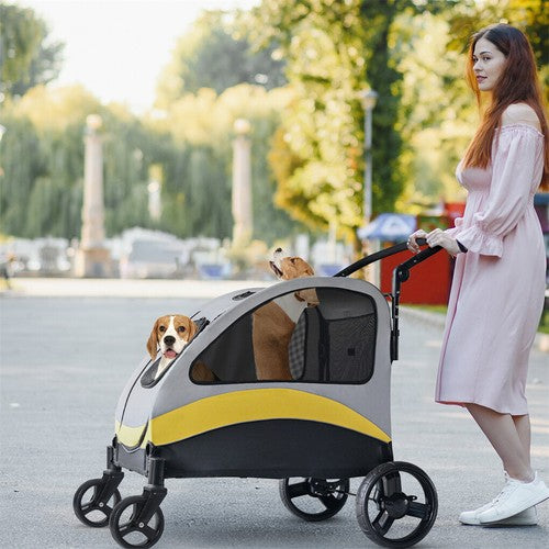 Large Double Seat Dog Stroller Pet Pram Wagon Dividered Travel Pushchair Carrier